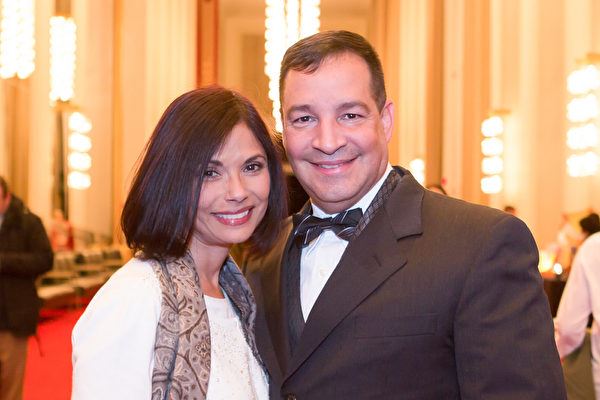 ![]() 图4:美国陆军准将洛佩兹(Hector Lopez)与太太一同观赏神韵演出。他说:“我绝对喜欢神韵。” |