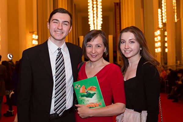 ![]() 图7:美国国务院外国服务研究所主管登克尔伯格(Kelley Dunkelberg)女士(中)和两个儿女观看神韵演出。 |