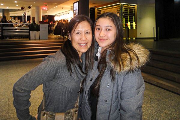 ![]() 图17:华裔作家Seto和女儿三观神韵,她表示,往后的每一年至少要来看一次神韵。 |