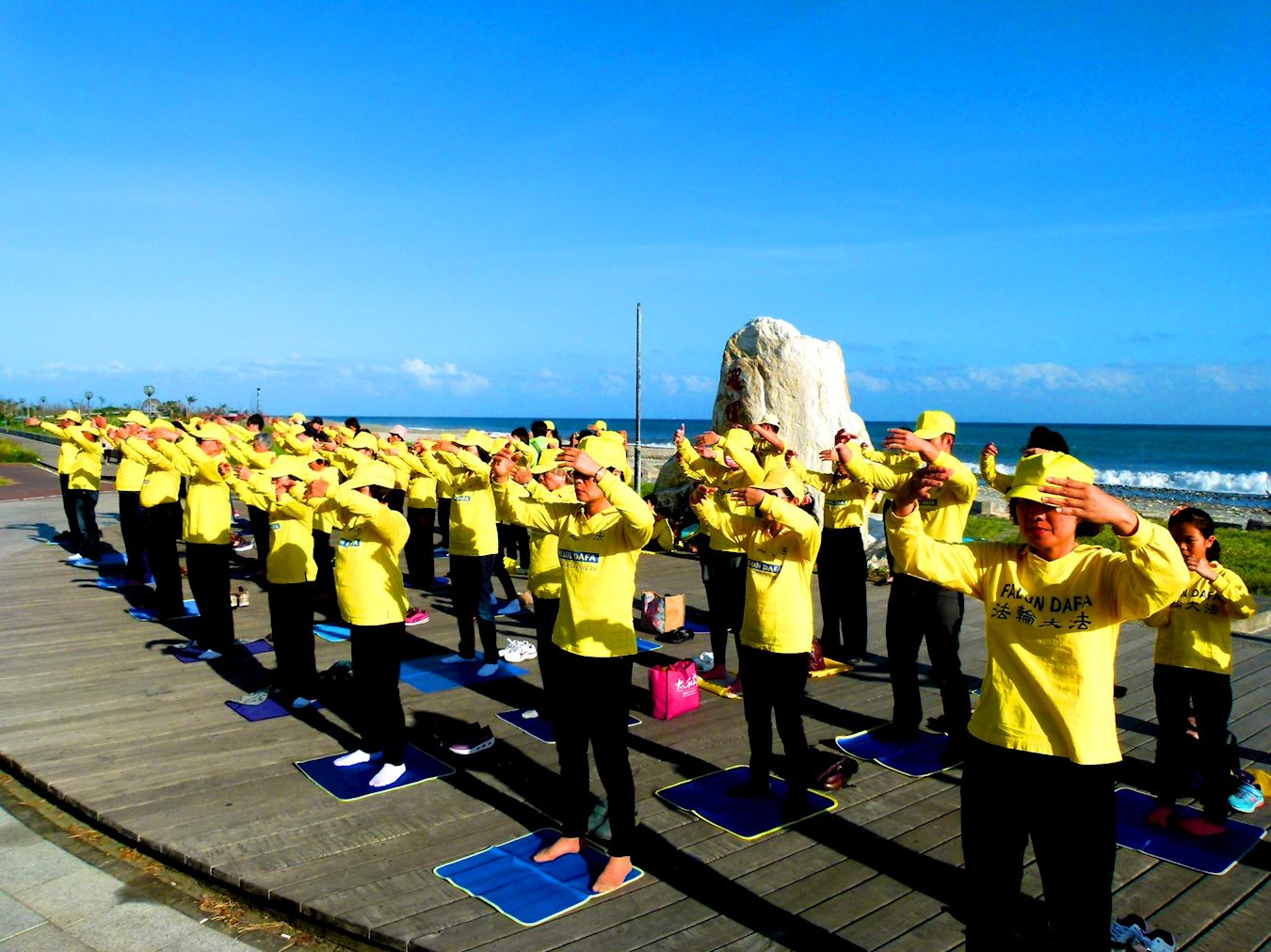 ![]() 图2~4:台东法轮功学员在海滨公园集体炼功,展示优美祥和的五套功法。 |
