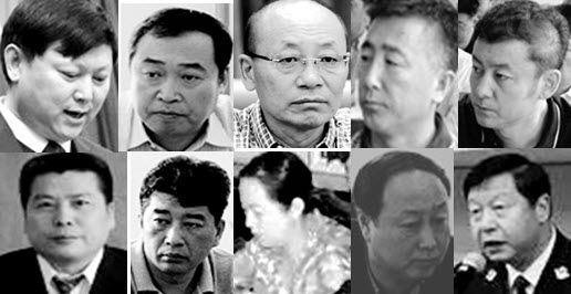 下排从左至右:建华区法院刑庭庭长石岩、政法委执法办公室主任黄雷鸣、中级法院刑庭副庭长金曙、政法委政治部主任李志强、齐市公安局原副局长王勤芳