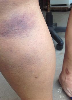 雷安祥遭警察殴打,两腿被打得红肿、青紫.