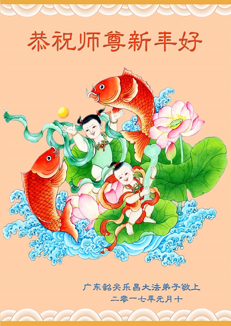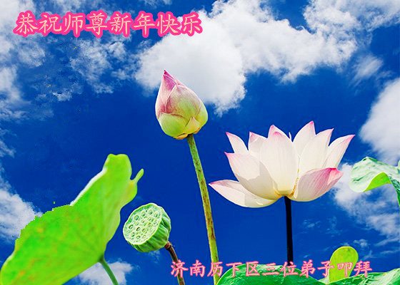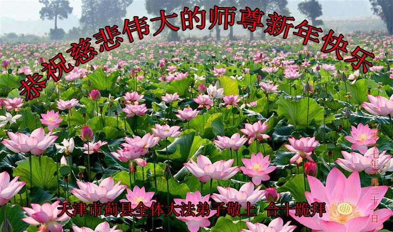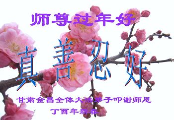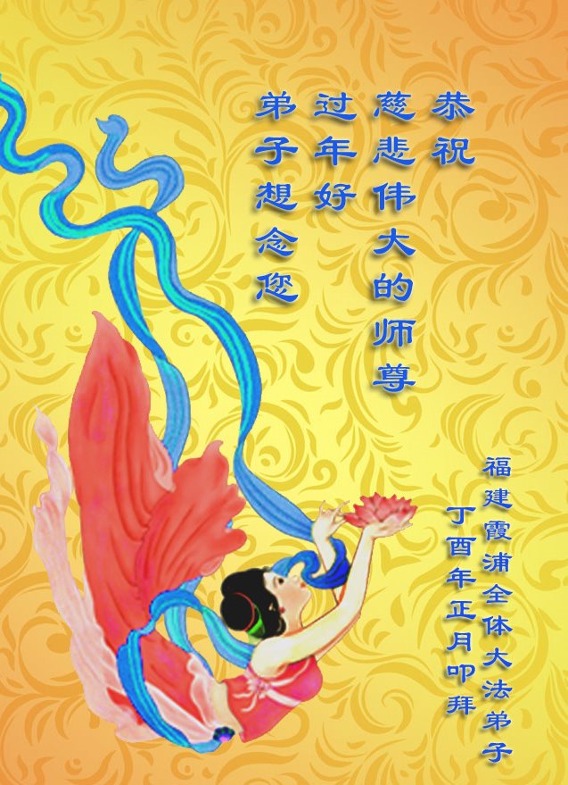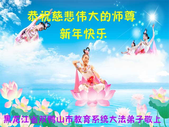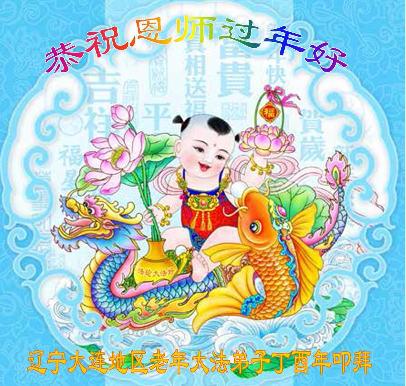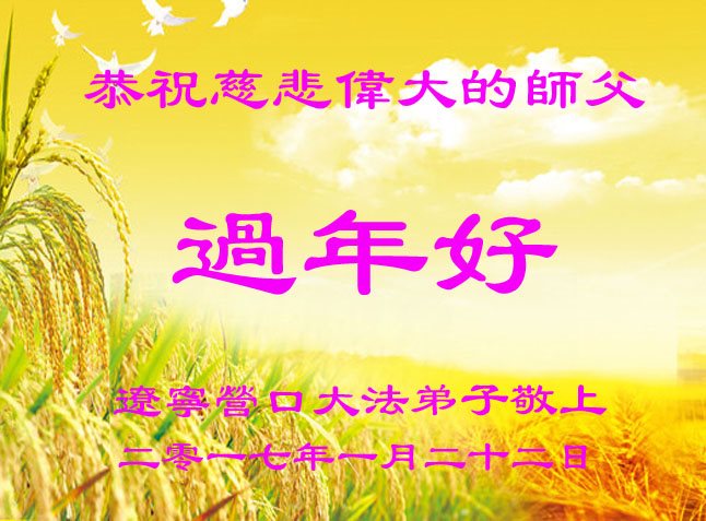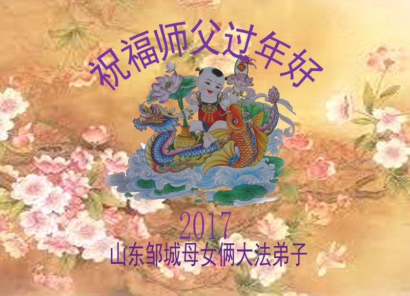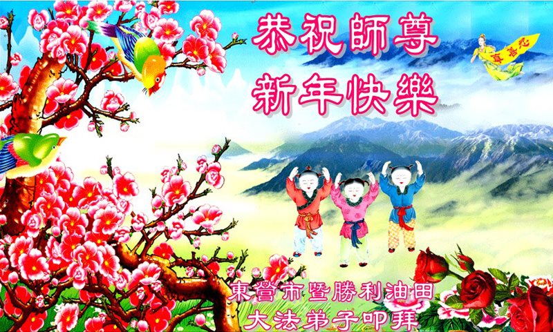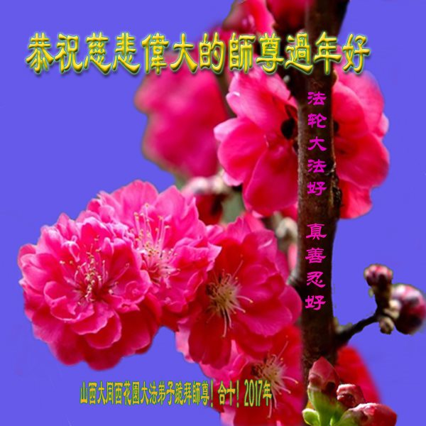 值此丁酉年新年之际,来自四川遂宁、辽宁抚顺、吉林长春、山东省威海、河北石家庄、吉林德惠、四川成都、山东招远、辽宁鞍山、湖北武汉、吉林舒兰、辽宁义县、重庆开州、湖北天门、胜利油田等七省十五地的资料点的大法弟子给慈悲伟大的李洪志师尊拜年!