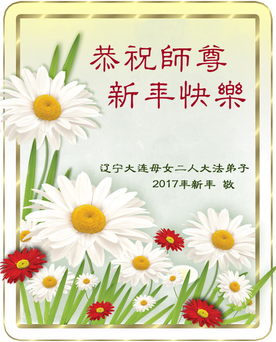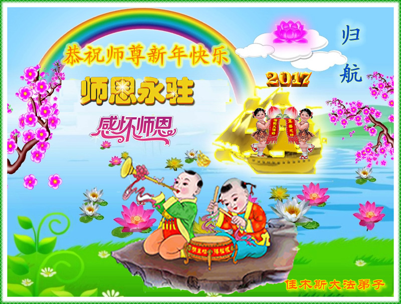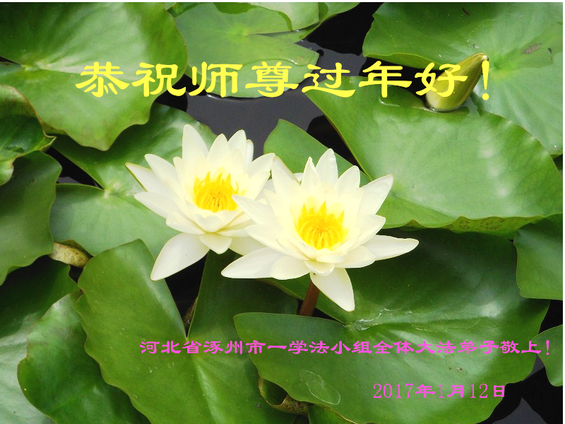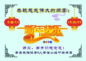 这是吉林省乾安县一学法小组大法弟子们在恭祝师尊2017年新年快乐的贺词,发自内心的表达大法修炼的美好。