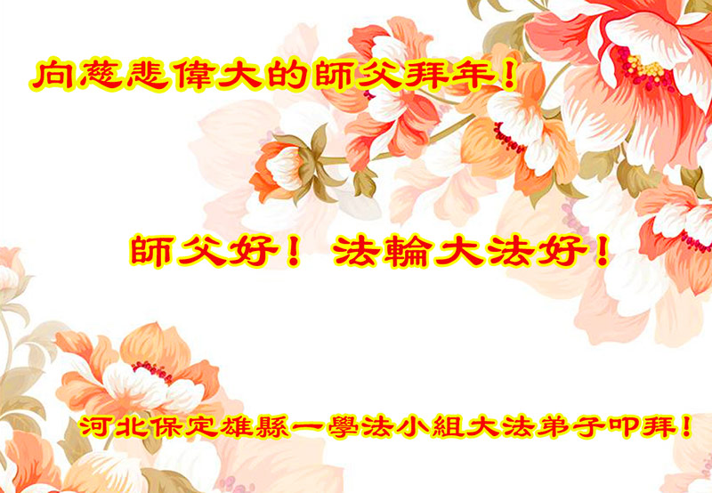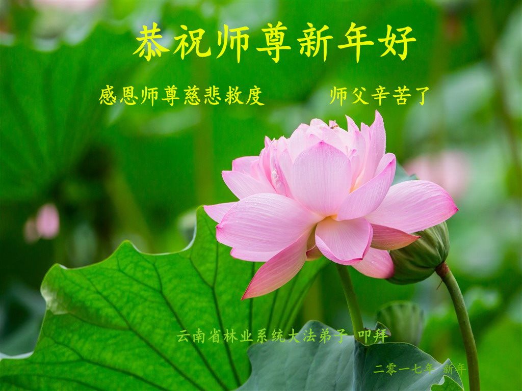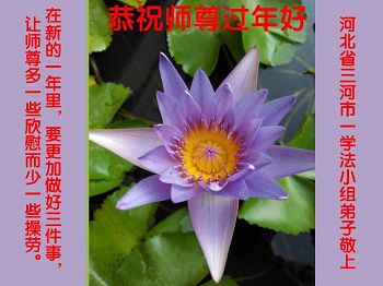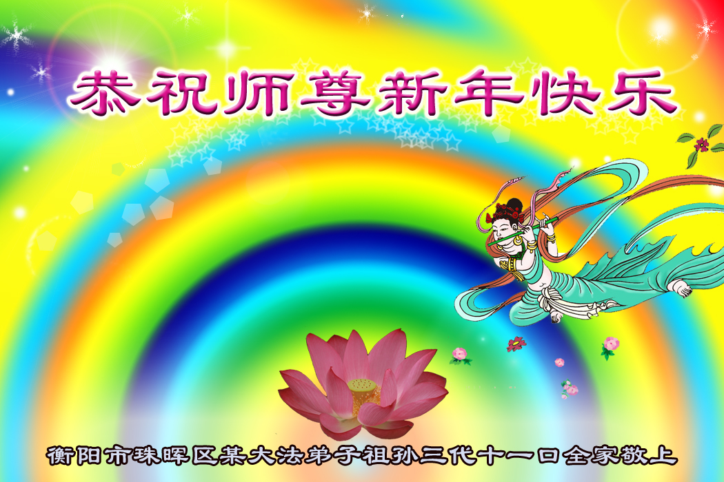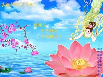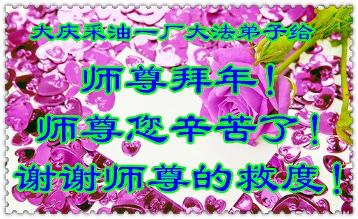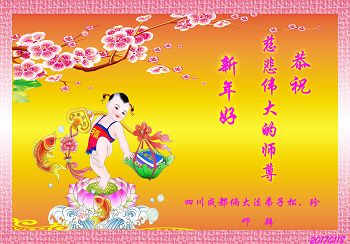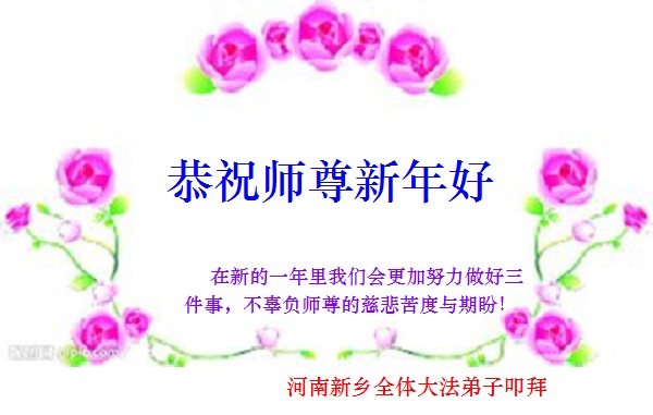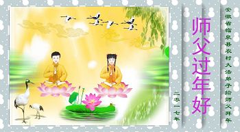 “要感谢师父的太多太多了,师父把大法传给我们,把我以前不正的行为归正,身心受益无法用言语答谢,内心说:师父谢谢您,师父新年好。”
