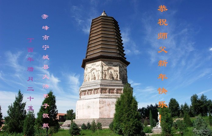 师父您好:弟子值此丁酉新年之际给慈悲伟大的师父拜年:师父过年好!您辛苦了!恭祝师父新年快乐!