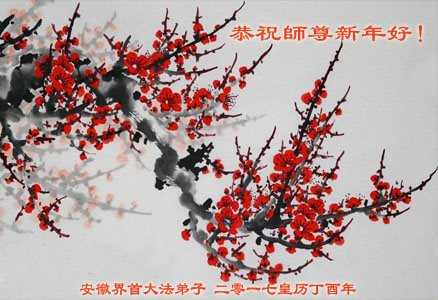 我家也是亿万梅花的一朵小花。十二年来,在师尊的看护下,在同修的帮助下,这朵小花越开越茂盛。不管严寒酷暑,邪恶疯狂。这朵小花依然坚定的站立在风雪中。发放着温馨的花香,唤醒每一个生命的归来。这一切一切都是师尊替弟子和众生承受了无边之苦,才迎来了二零一七年的喜悦新年。