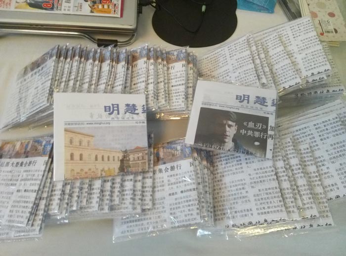 我是这样发放的,比如这周有《明慧周报》大陆版和《三退与平安》,《纵观天下》,还有我们省的《周报》。