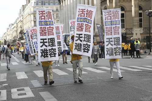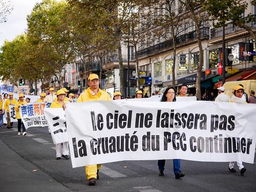 时值周末,游行所经之地人流川流不息,沿途民众有些已经听说过法轮功及中共迫害法轮功的真相,还是有很多人头一次听闻法轮功和中共对法轮功的迫害,尤其是中共活摘法轮功学员器官的罪行,更是令法国民众和来自各国的游客感到震惊,人们纷纷表示声援法轮功学员的反迫害活动。法轮功学员的游行队伍让连续经历了数次恐怖袭击的巴黎民众感受到平和与放松,人们看到了不同年龄、不同国度、不同肤色的法轮功学员展现出法轮功的美好,露出了高兴的神情。