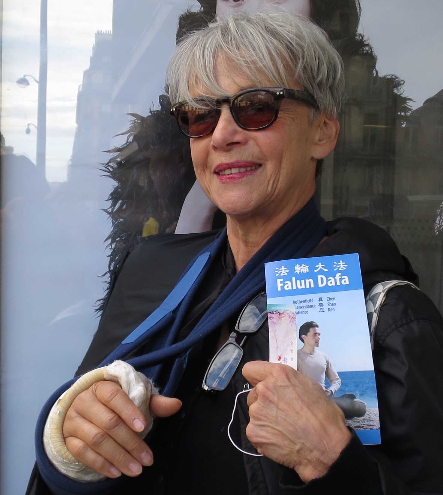 Sylvie对法轮功学员信奉的真、善、忍表示认同,“这些价值应该是正常的价值,很可惜现在需要通过游行来告诉大家。的确法国人很少知道这事。”