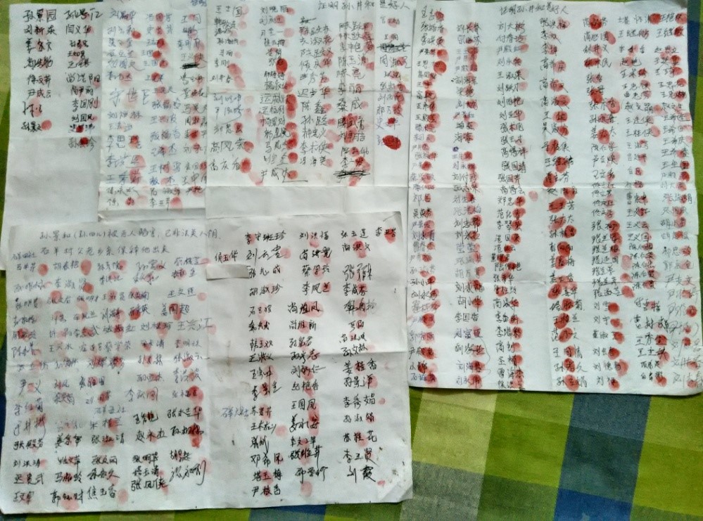 孙景和被中共非法关押迫害后,有四百多名村民联合签名,要求无条件释放好人孙景和。