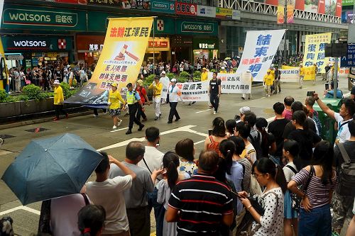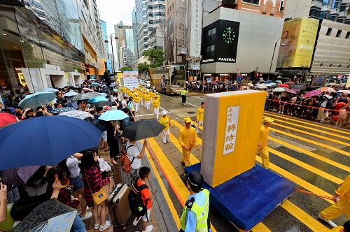 法轮功学员游行阵列中的大型横幅及各式幡旗,将法轮功真善忍的美好,及中共迫害法轮功学员真相传递给沿途的市民及游客。许多大陆的旅客深受震撼,纷纷拿起手机拍照和录像,他们表示法轮功“真、善、忍”教人向善没有错,会把游行的场面和信息传播给中国大陆的亲朋好友。