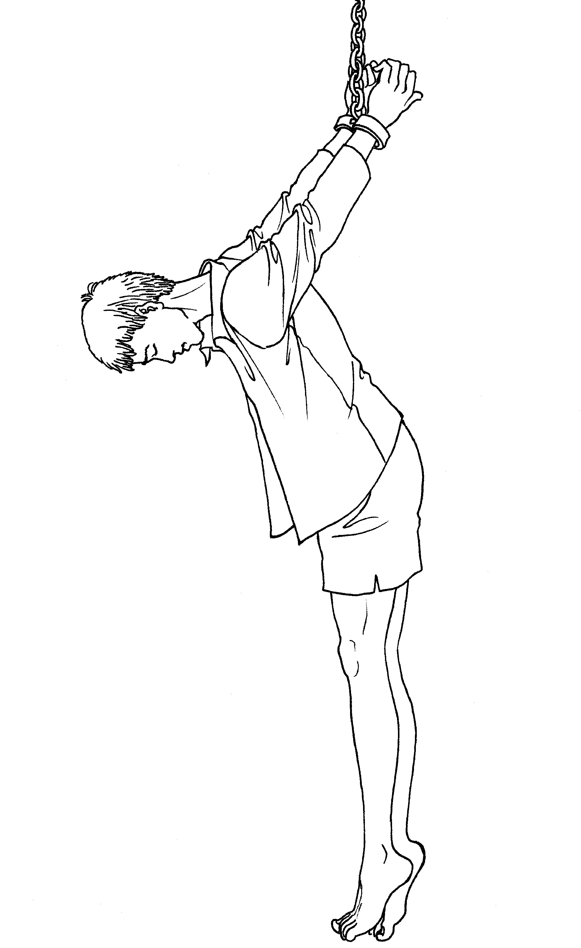 13. “扎鸡翅”:用手铐铐住双手反吊在高低床上或平伸铐在1米九长的高低床上。