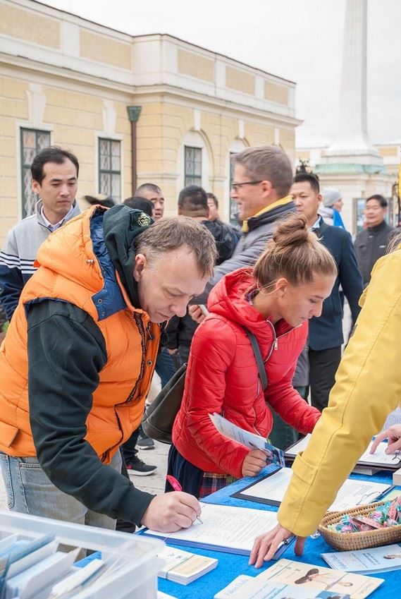 ![]() 图3:一对匈牙利父女签名支持法轮功反迫害 |