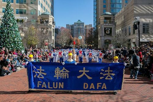 有一百五十名法轮功学员组成的天国乐团今年首次参加这个游行,当队伍经过主席台时,主持人介绍:这个乐团的成员修炼法轮功,修炼“真善忍”,他们共乘坐了三辆大巴从纽约来参加这个游行,感谢他们的付出。观众报以热烈的掌声和赞叹,许多人举起手机拍摄。维州瑞斯顿市民 Dave Ingram说:“我喜欢他们的队伍﹗我曾在香港工作过两年,在那里我看到过当地华人的游行。这是我看到的最好的。”