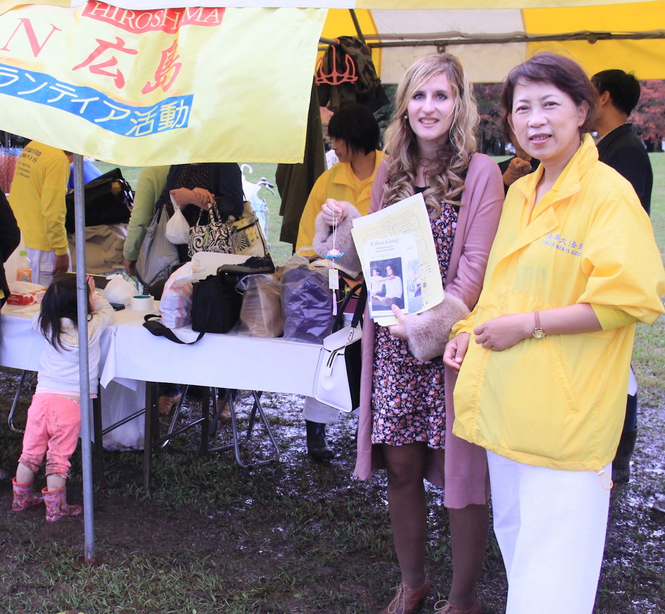 广岛市的电视台的记者也来到法轮功的展位前拍照后,详细的听了法轮功的介绍,并领取了介绍法轮功的资料。