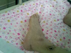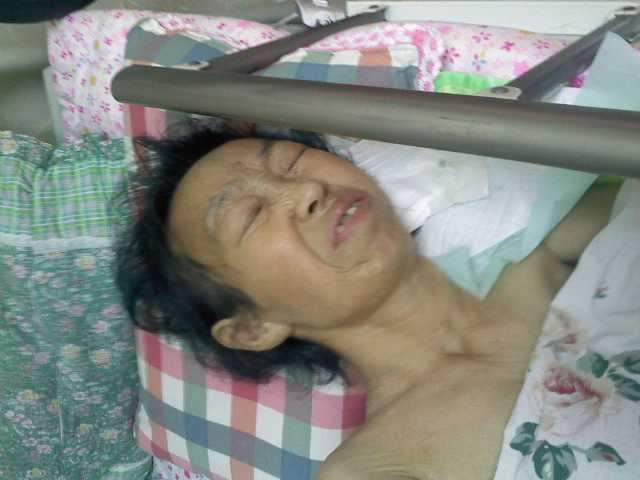 在被非法关押期间,霍润芝在身体和精神上都受到了非人的折磨,致使身体多处受伤,全口牙齿全部被打活动了,出现严重高血压症状,直肠肿瘤,身上多处伤疤,瘦得皮包骨,生命垂危。(见图片)