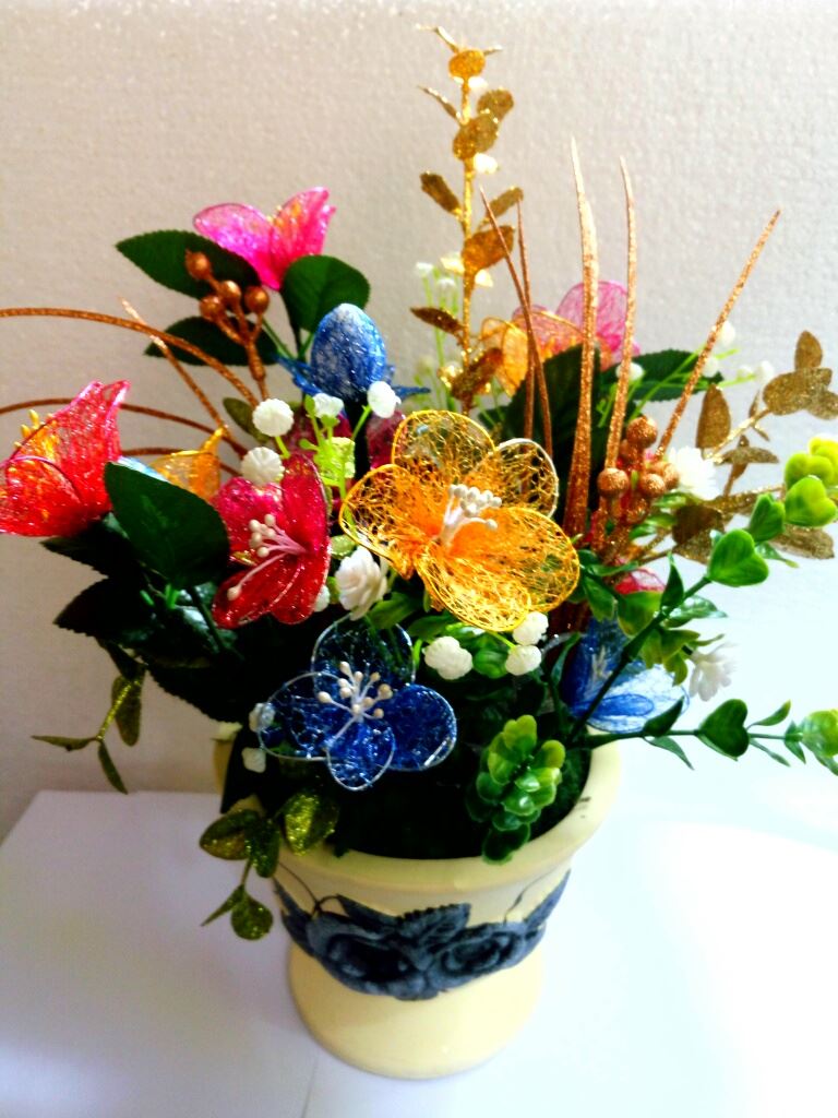 【明慧网二零一七年二月十一日】这盆花是云南昆明一名老年法轮大法弟子怀着得法后的愉悦、恭敬的心情,亲手给师父制作的,供奉在师父的法像前,以谢师恩!