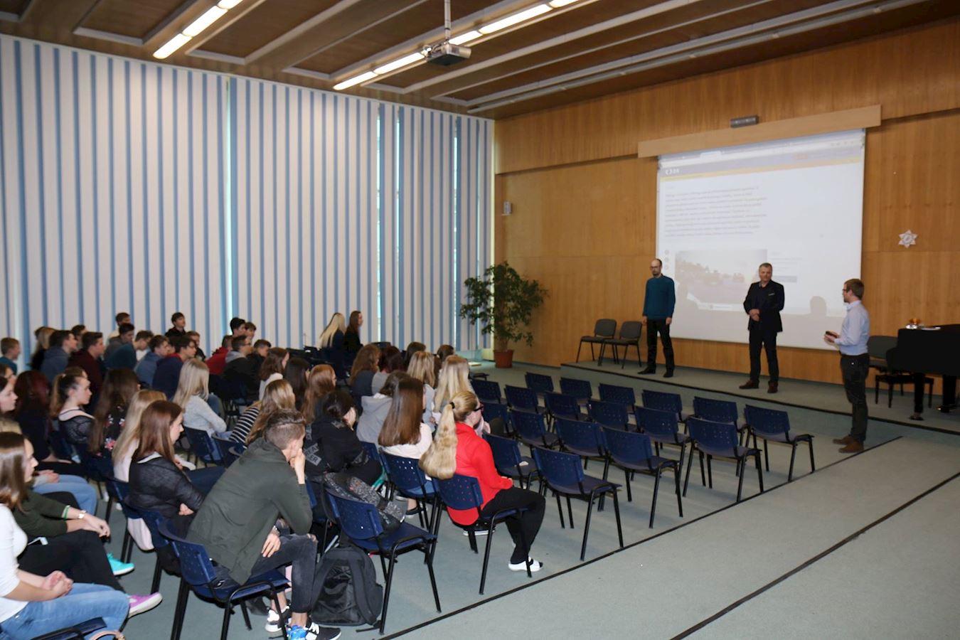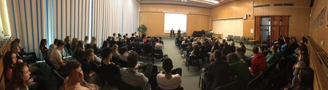 【明慧网二零一七年三月十一日】二零一七年三月八日,捷克法轮功学员来到比尔森市的František Křižík高中,向学生们介绍法轮功功法(meditační cvičení Falun Gong)。