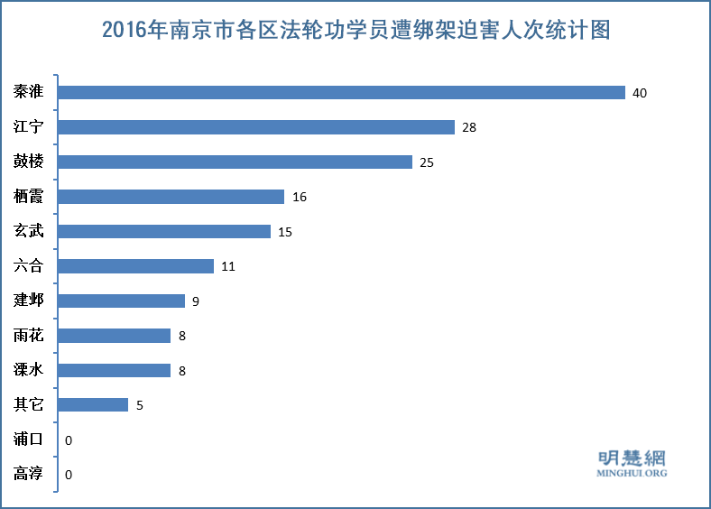 ![]() 图1. 2016年南京市各区法轮功学员遭绑架迫害人次统计图 |