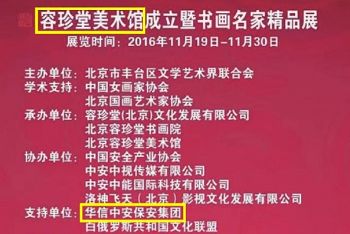 容珍堂美术馆成立支持单位:华信中安保安集团。中国当代百名女画家精品展支持单位:华信中安集团。