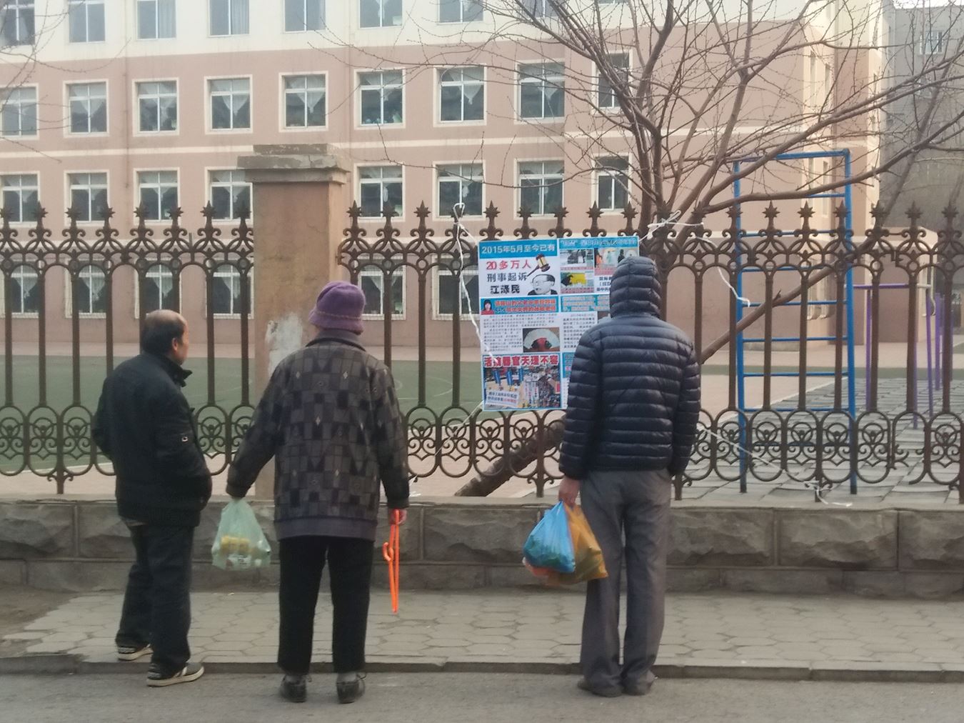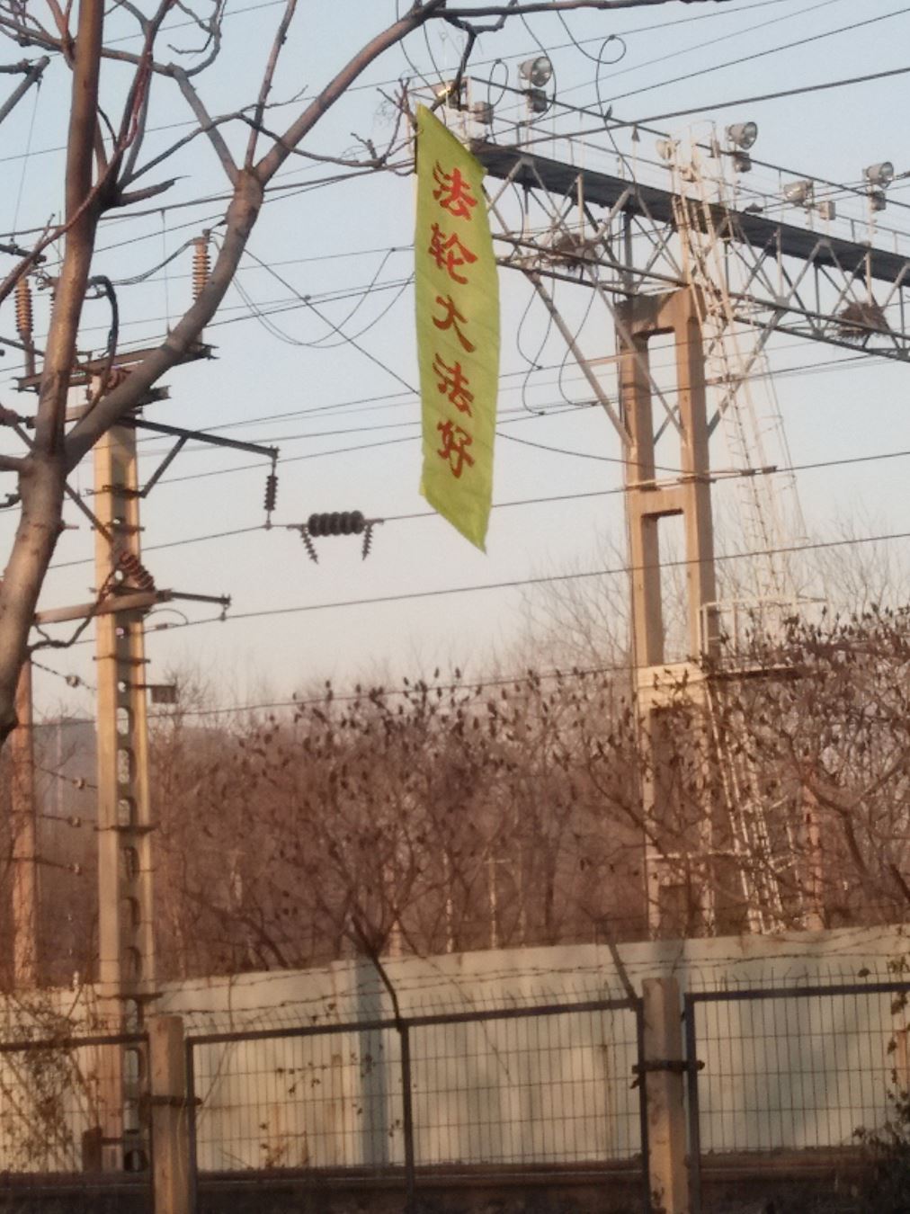 东北某地在火车上方出现“全球控告江泽民”条幅