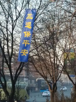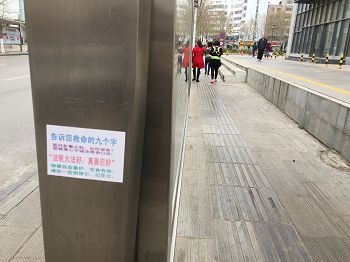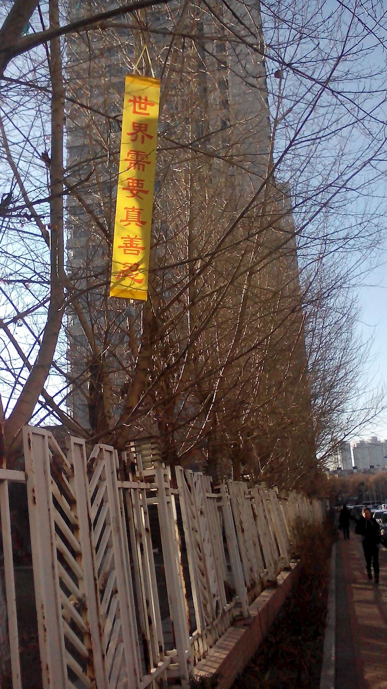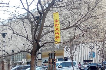哈尔滨市3月21日出现在市区街道上的展板条幅
