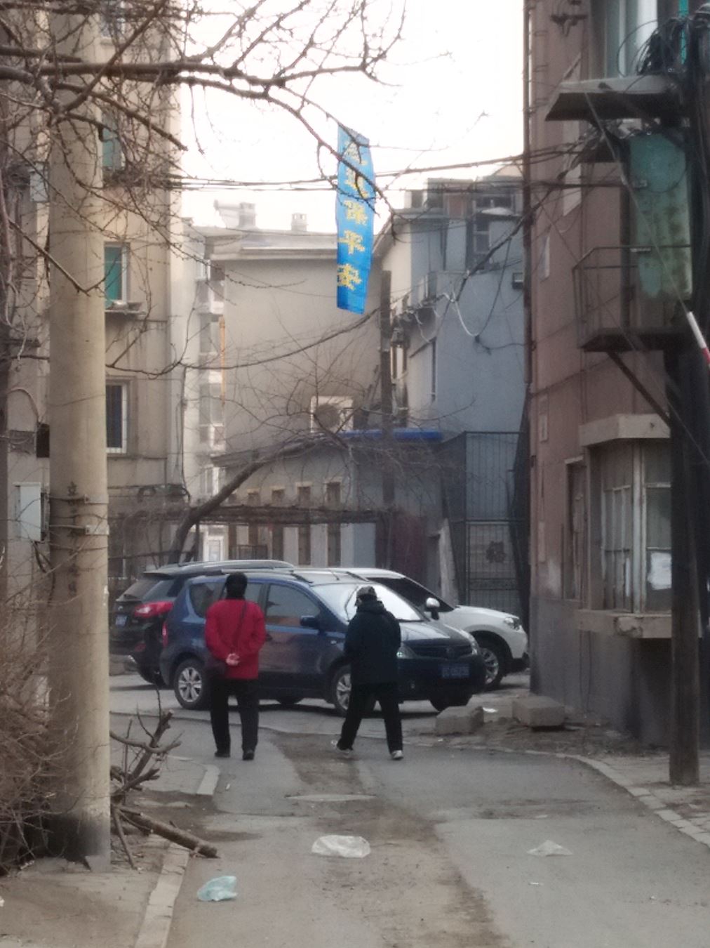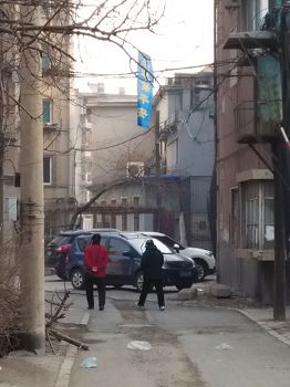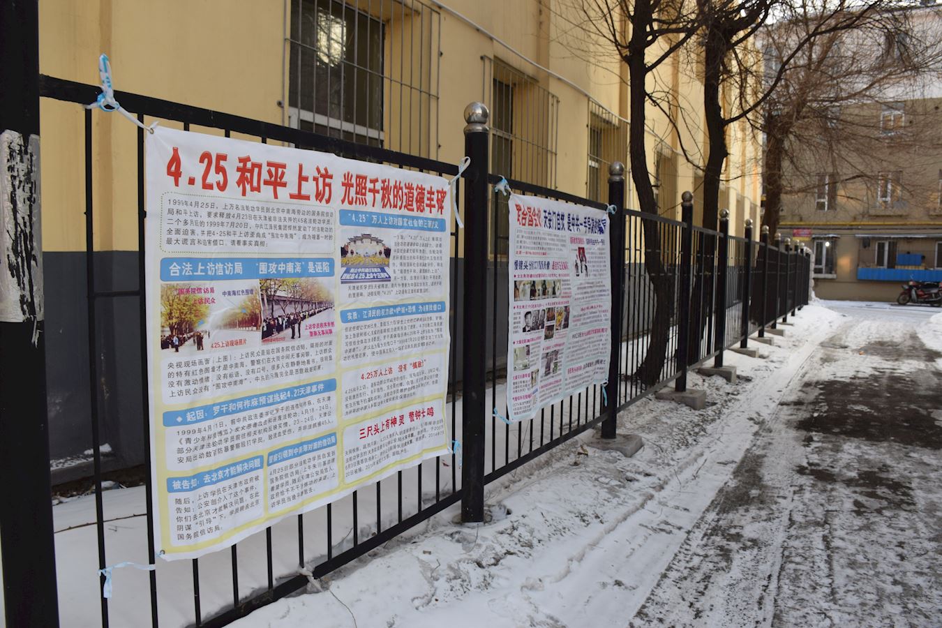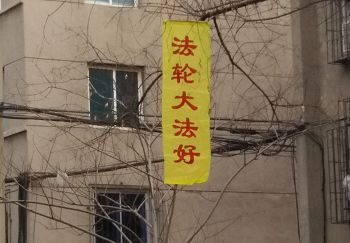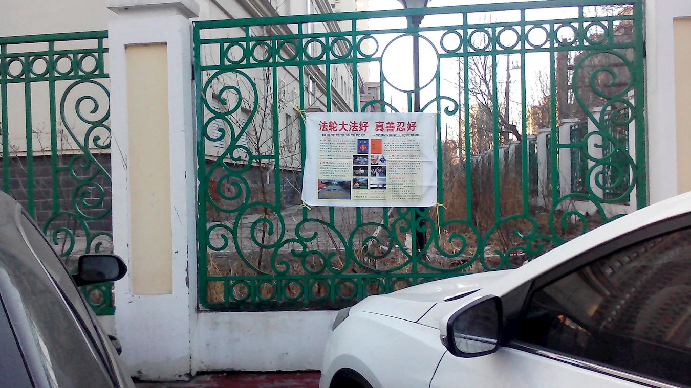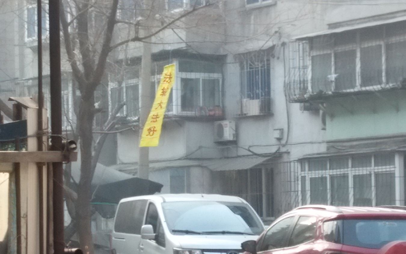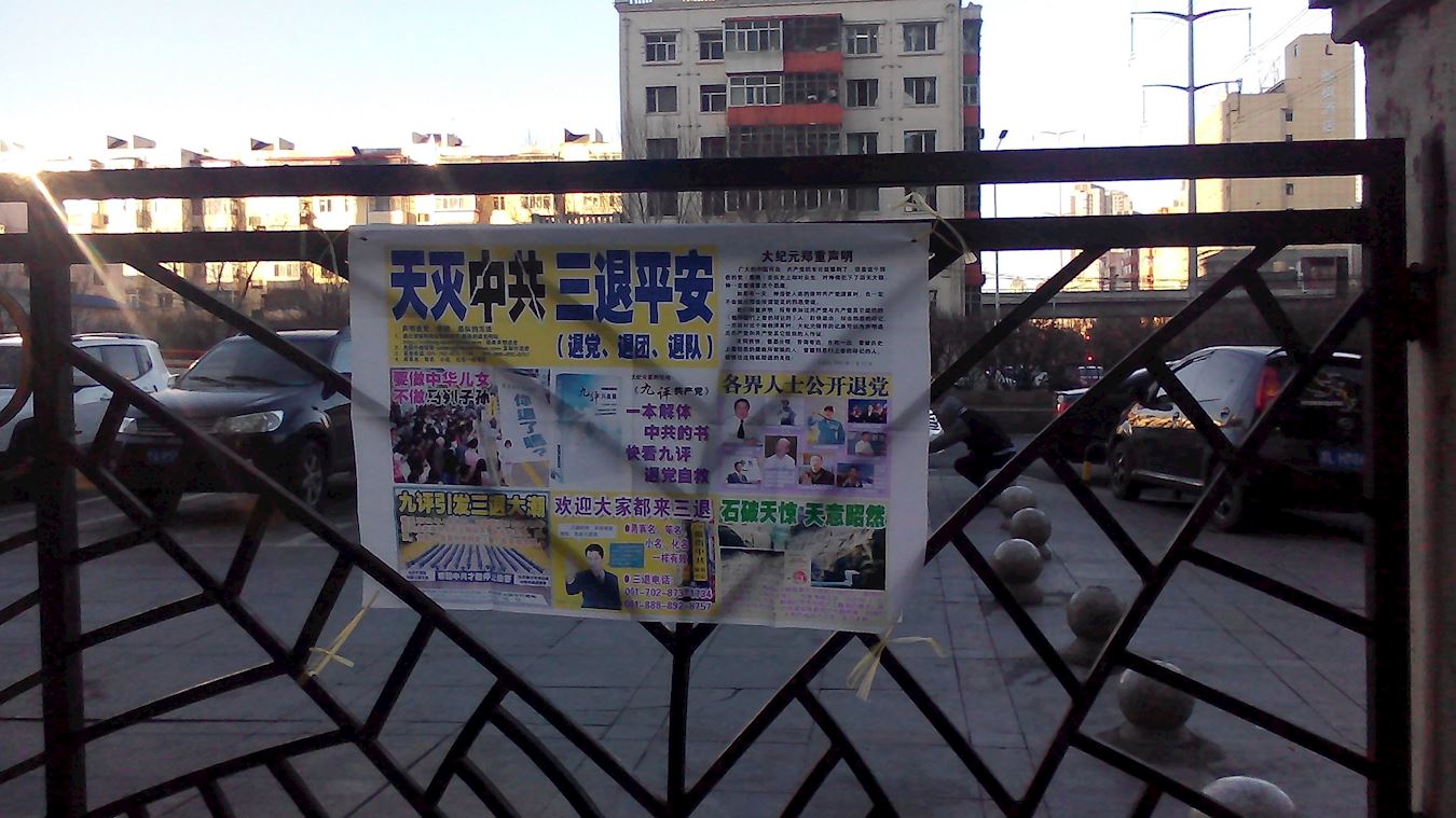 鞍山街头和居民区的真相条幅和展板