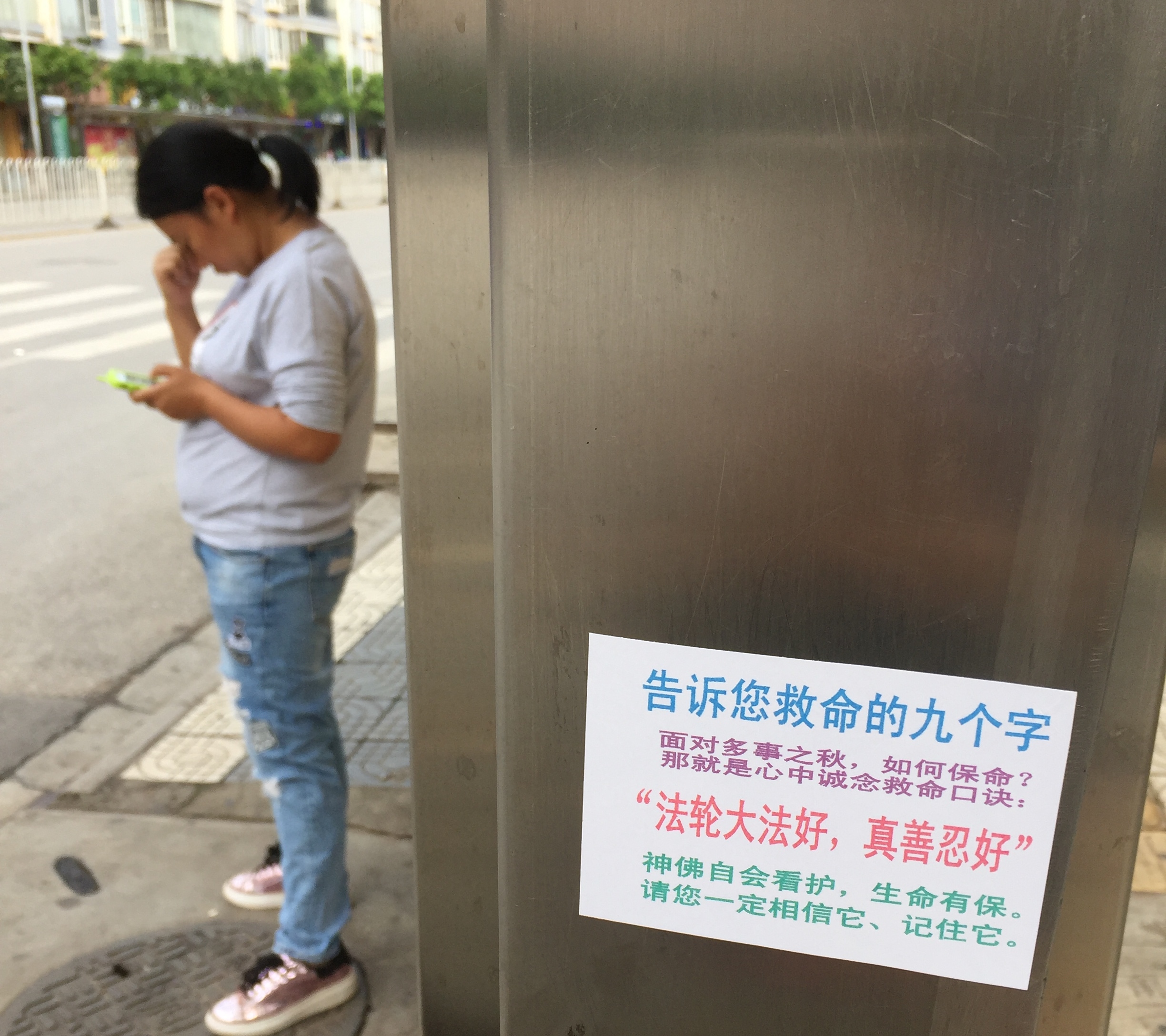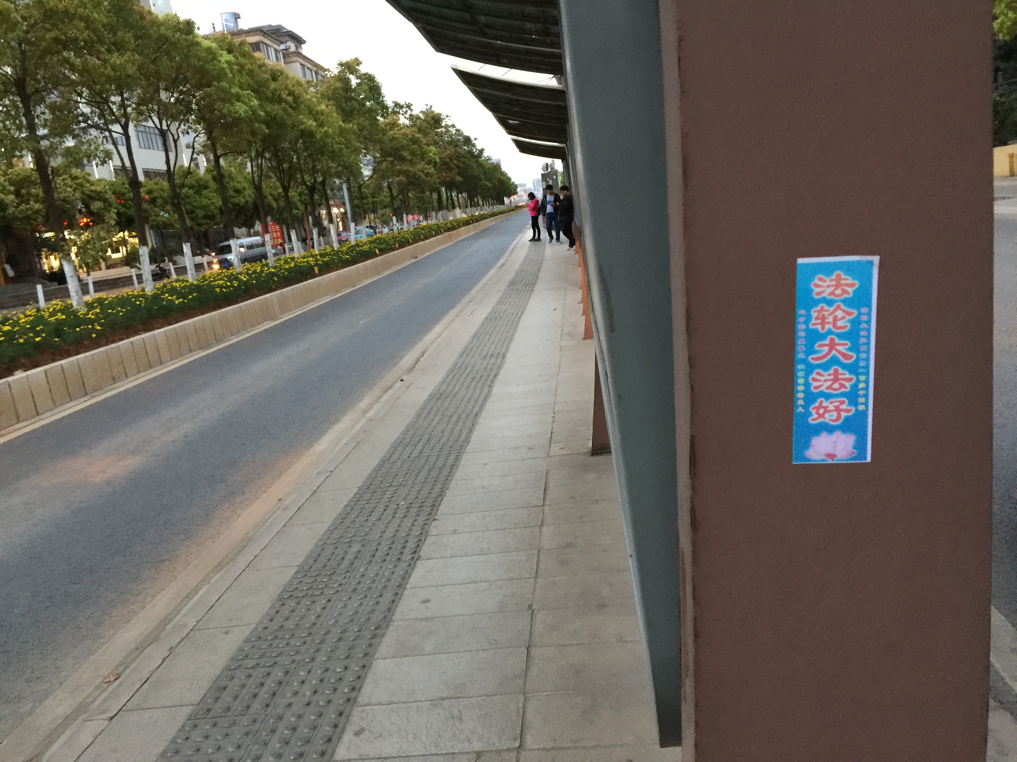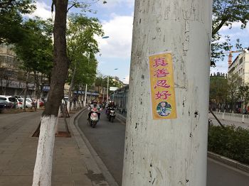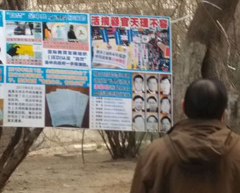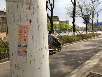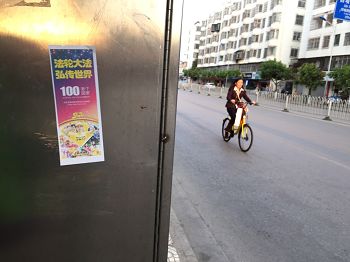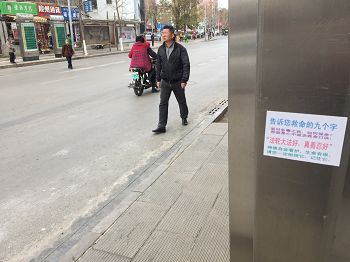 林市街头展板讲述法轮功基本真相