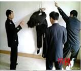 ![]() 中新网二零零二年四月一日的图片显示:关押的房间内血迹斑斑,刘成军显然已无力保持自然坐 |
