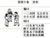 四十象:三人:众多,众人炼“轮”。脚下无履:站不住脚,办事无实据。首无毛:幼稚。木子:李姓。猴:92年是猴年。雕:嘴尖刻弯曲的鸟,指尖刻歪曲真相的诽谤,诬陷(天罡)法轮功。