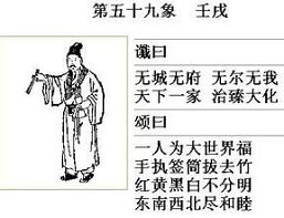 五十九象:图中是传道的大圣人,手持法器(竹筒竹签)。