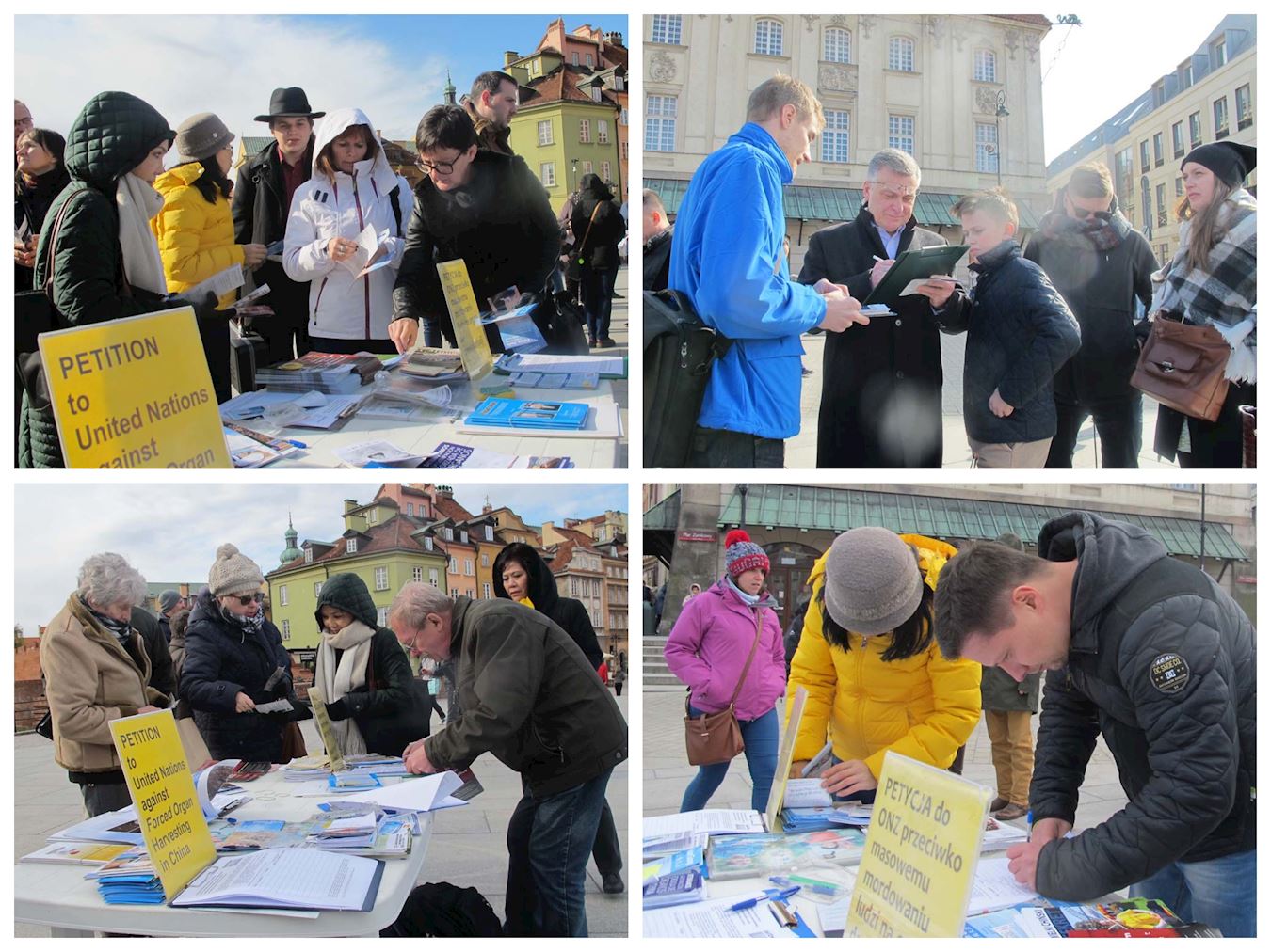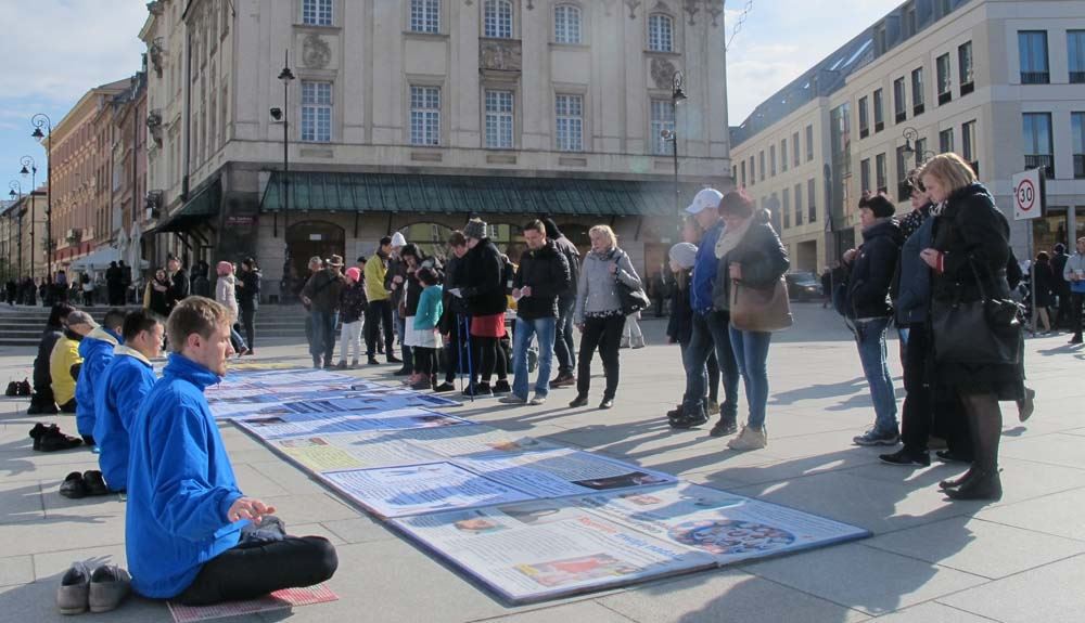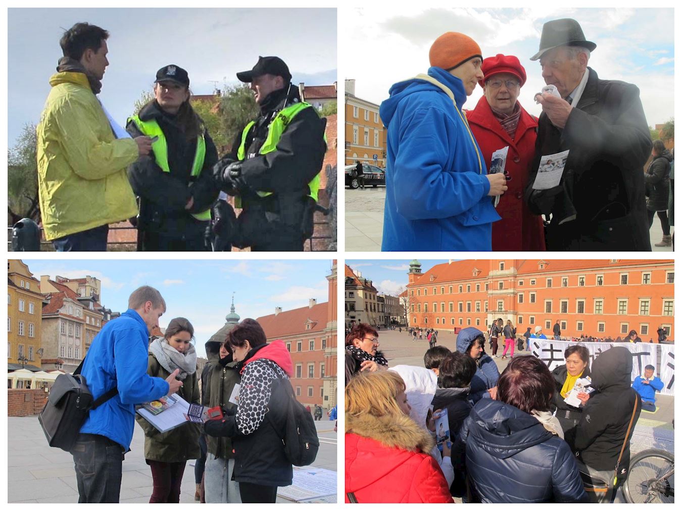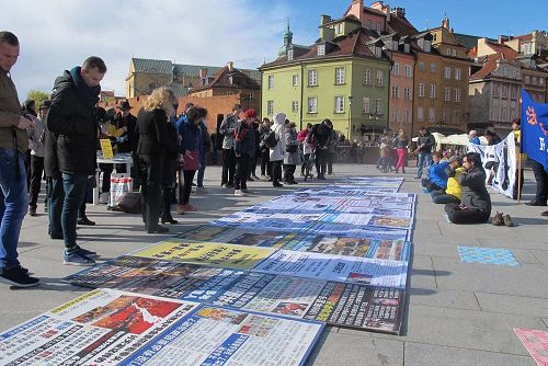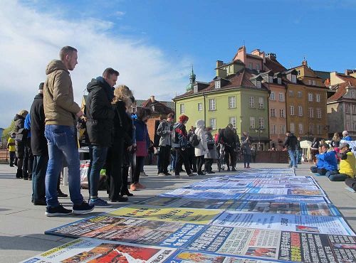 当天下午三点,波兰法轮功学员在华沙古城也举办了纪念四二五讲真相活动,受到众多波兰民众的关注和支持。许多民众明白真相后纷纷签名谴责中共对法轮功的血腥迫害。也有很多民众,包括中国游客拍照或驻足观看法轮功真相展板,还有人现场制作视频当即发送上网,传播真相。