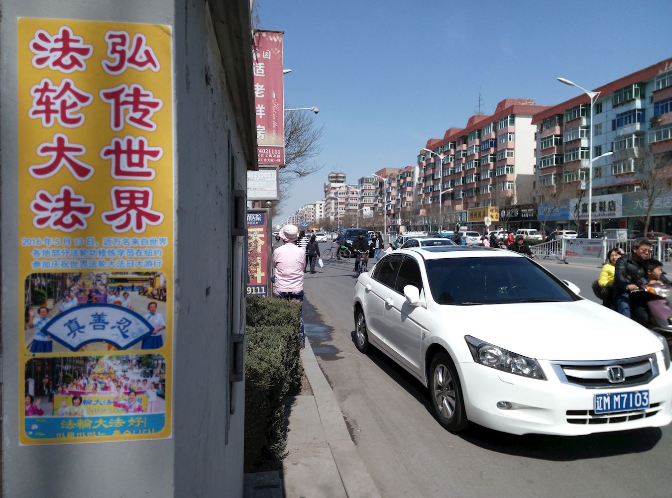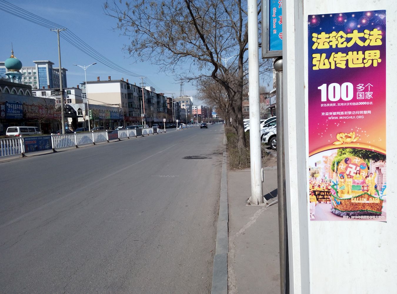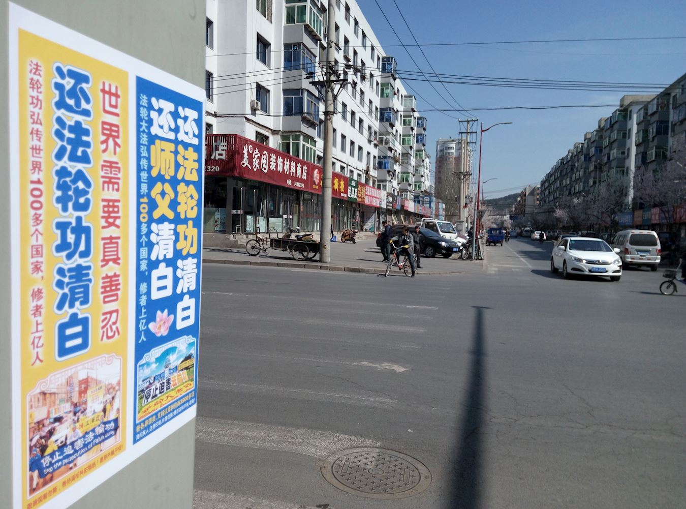 四月的铁岭桃树已经开花,柳树也刚刚发芽。“法轮大法好”“真善忍好”粘贴及“法轮大法”洪传世界和“513”大法日,三退保平安,法办江泽民,还法轮功清白等信息在铁岭的大街小巷广泛传播。