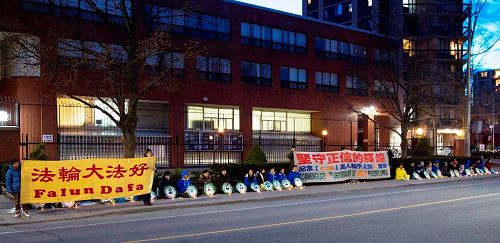 ![]() 图5~6:晚上八点至十点在中领馆前举行烛光悼念,缅怀十八年来因为修炼法轮功而在中国受迫害致死的法轮功学员。 |