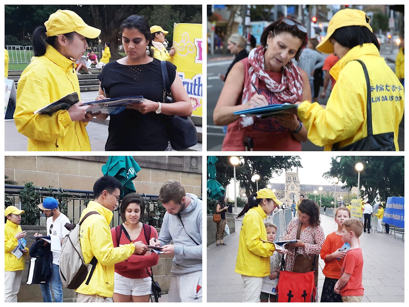 图3:二零一七年四月二十四日,悉尼法轮功学员在市中心的海德公园向民众讲述法轮功的真相,明白真相后,许多民众签名支持制止迫害。