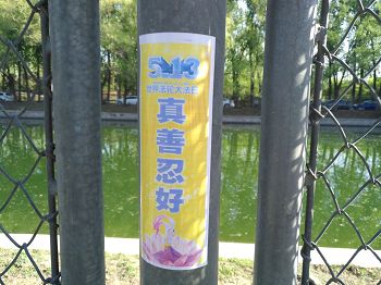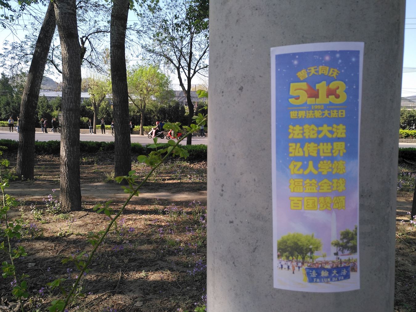 纪念“4.25”山东省日照市一县城再现真相展板、粘贴