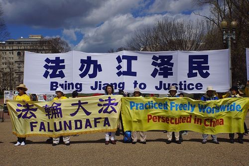 川习会前 法轮功学员白宫前呼吁法办江泽民(图)