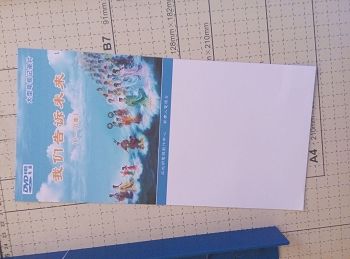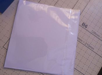 这样等于我们借用透明袋来固定纸张封面。这种透明袋市面上很多尺寸,买合我们的尺寸。