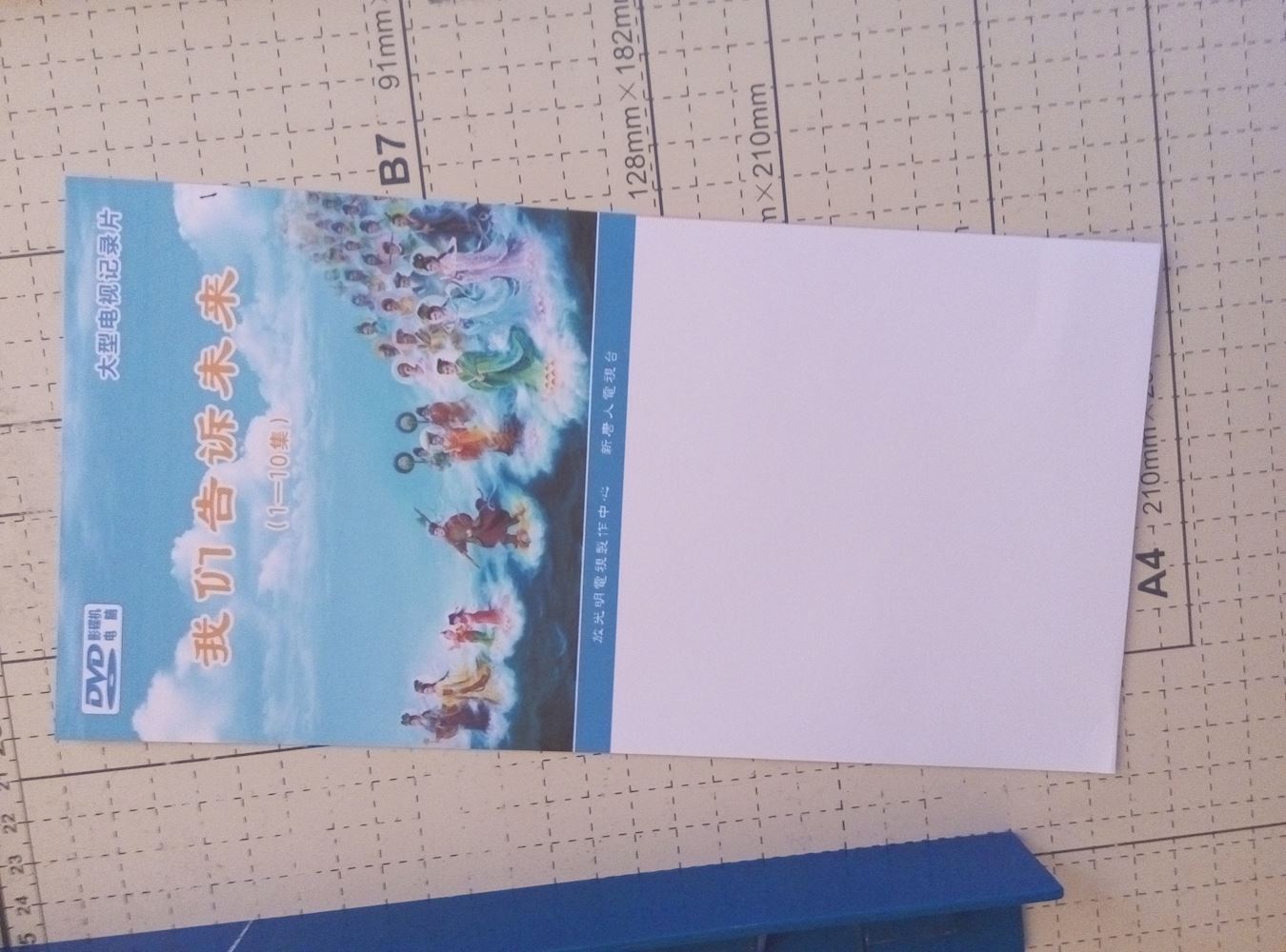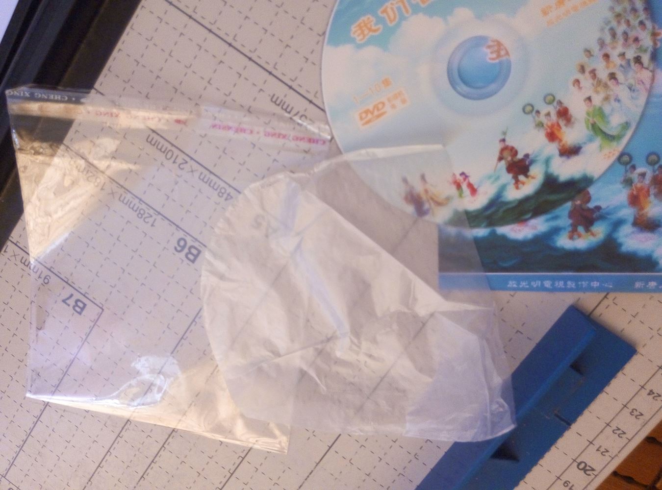 【明慧网二零一七年四月九日】一些资料点没有能力提供光盘盒子,用纸袋来代替。但是做出一个纸袋有很多繁杂的步骤,如不能跟别的封面一样,剪切时不能用切刀一步到位,需要一张张用剪刀剪切出来,再叠成形,接着涂胶水,晾干后再装光盘。涂胶水这步要小心点,涂多不行涂少了也不行。后来我们想到了一个简便的方法,也不影响美观,现向明慧投稿,如有不妥当请指正。