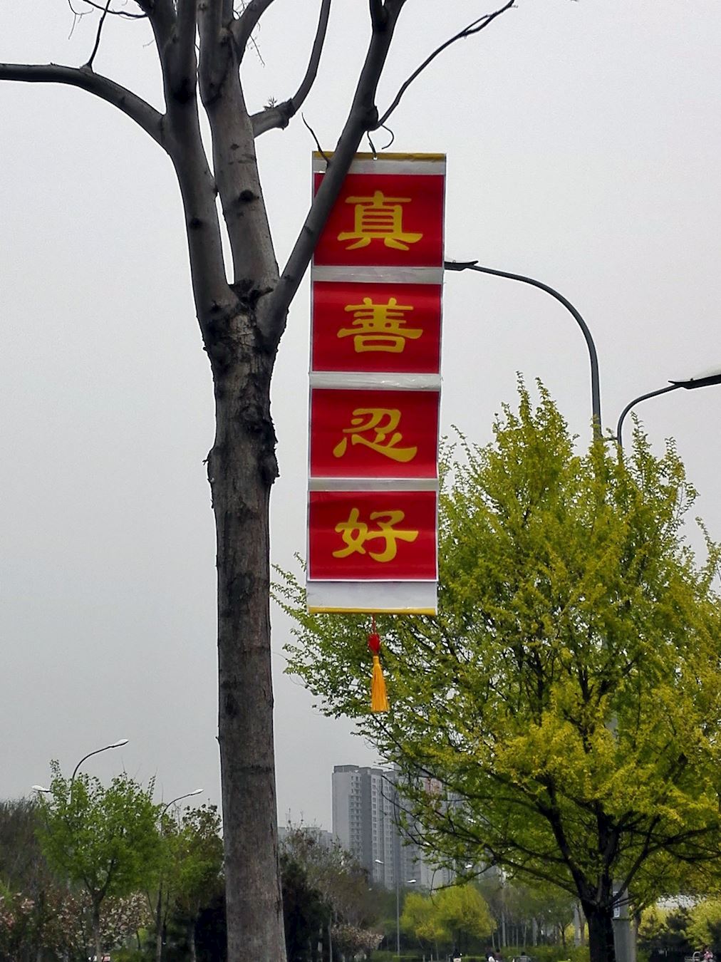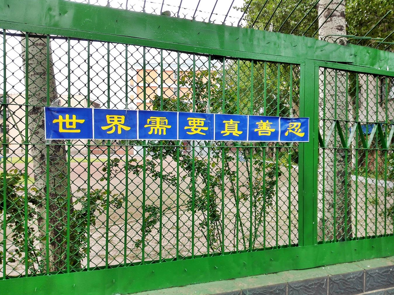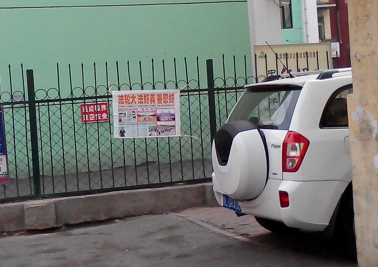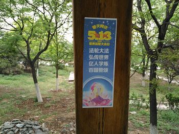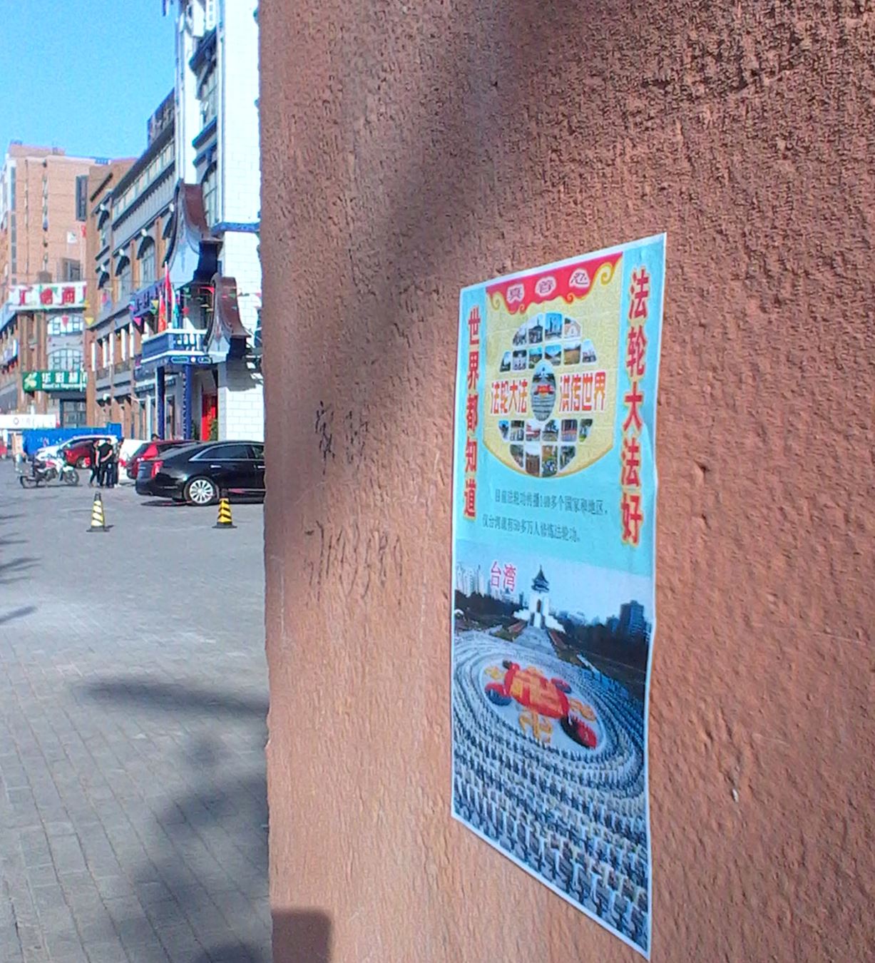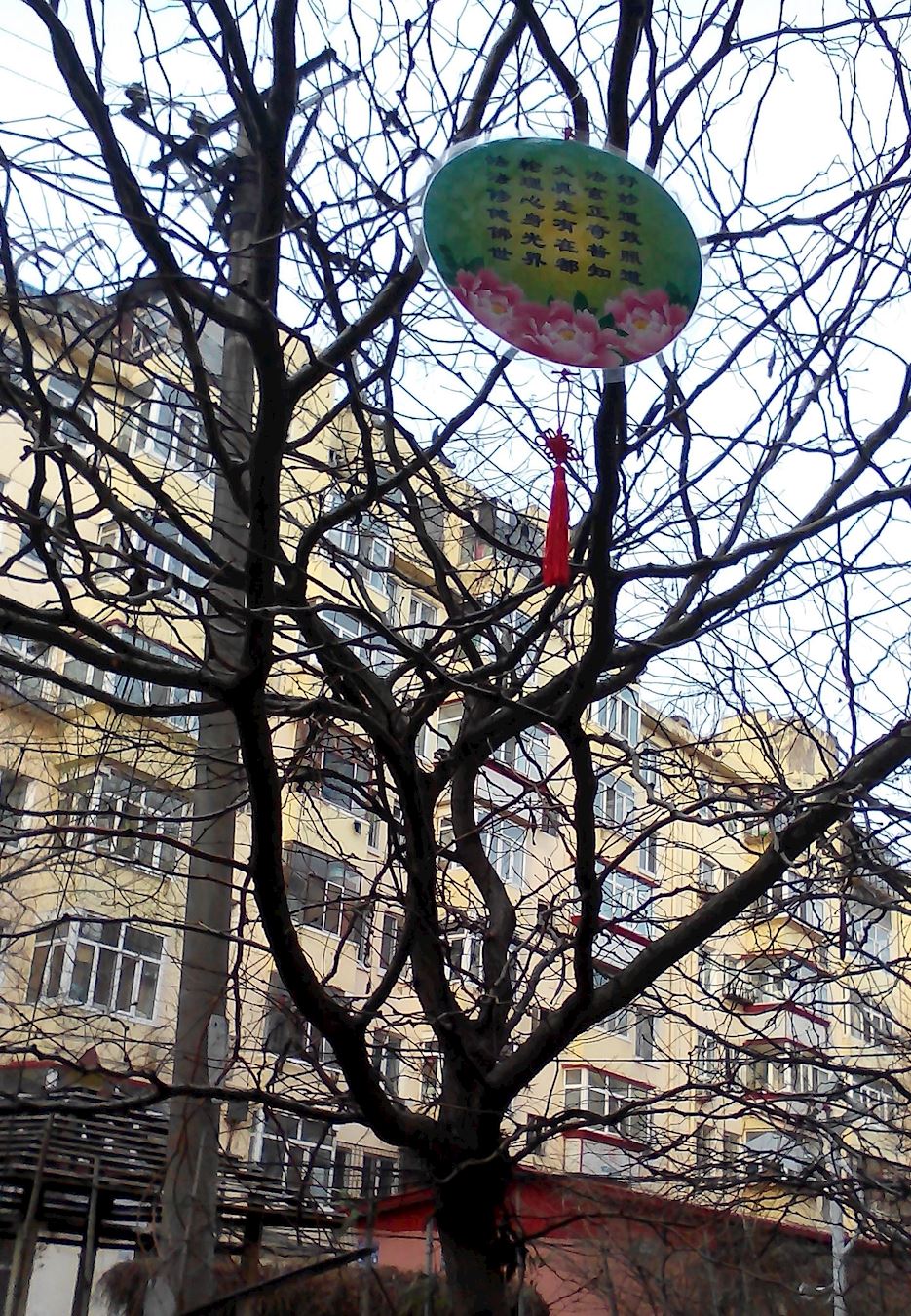 哈尔滨市近期拍照的讲真相展板树挂图片