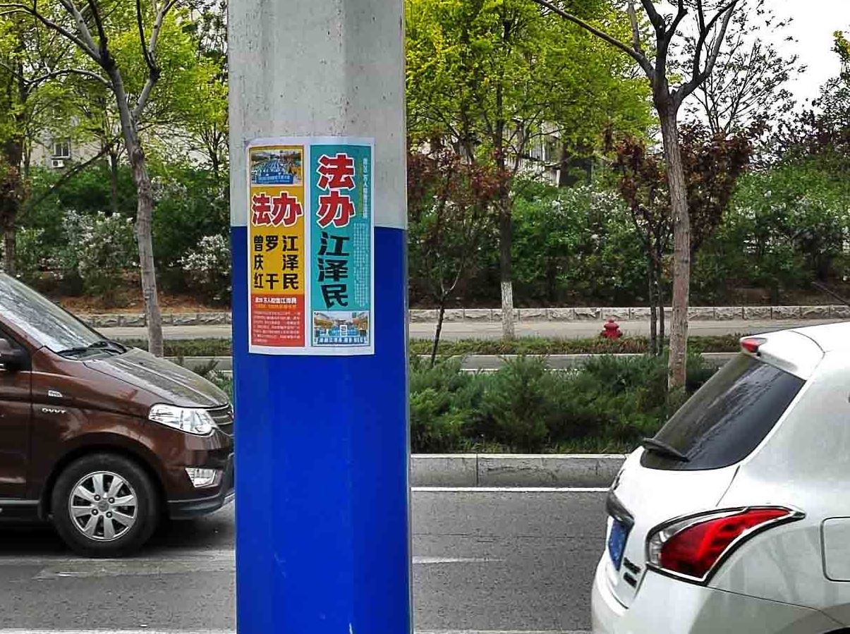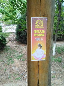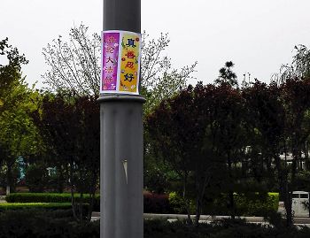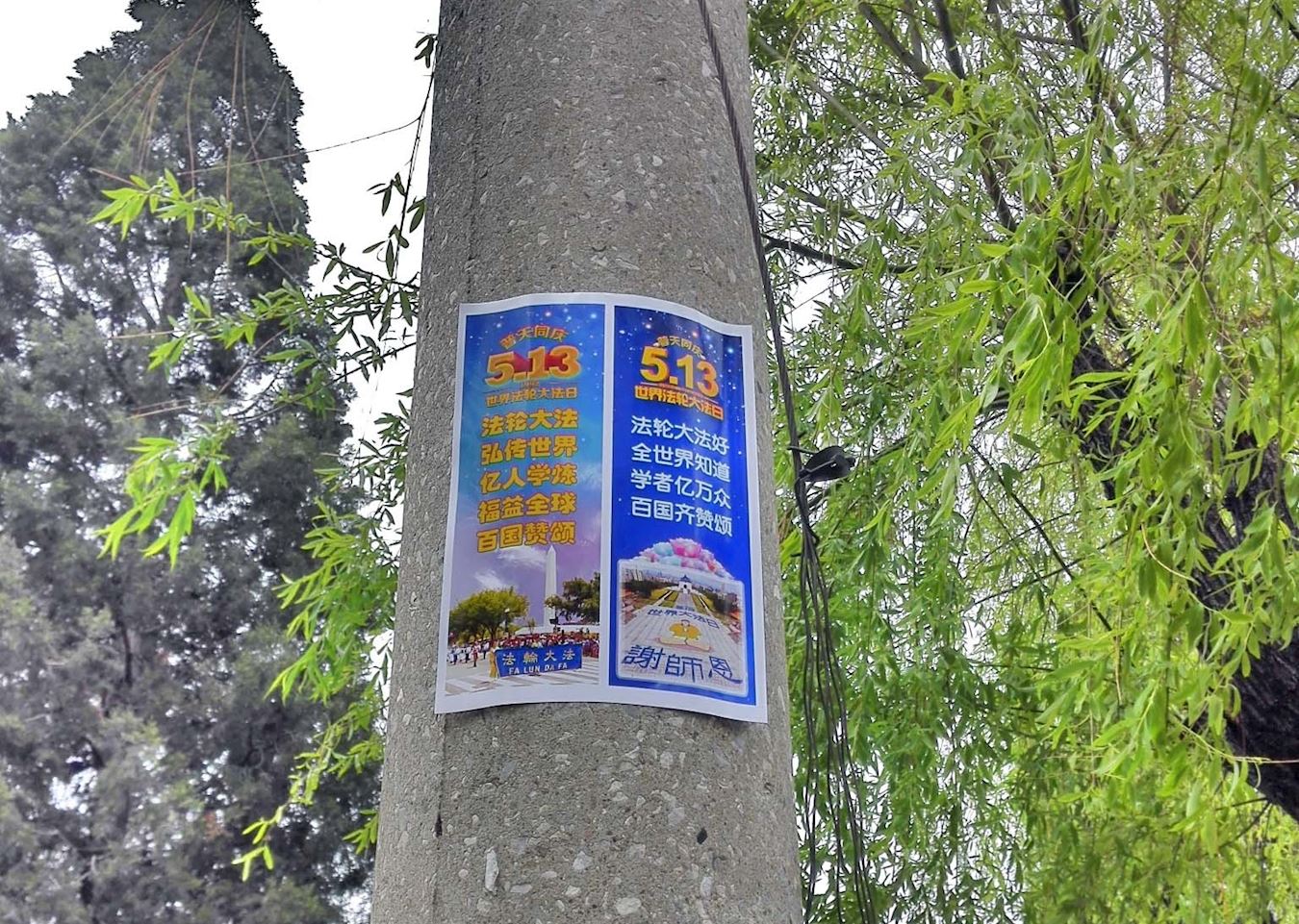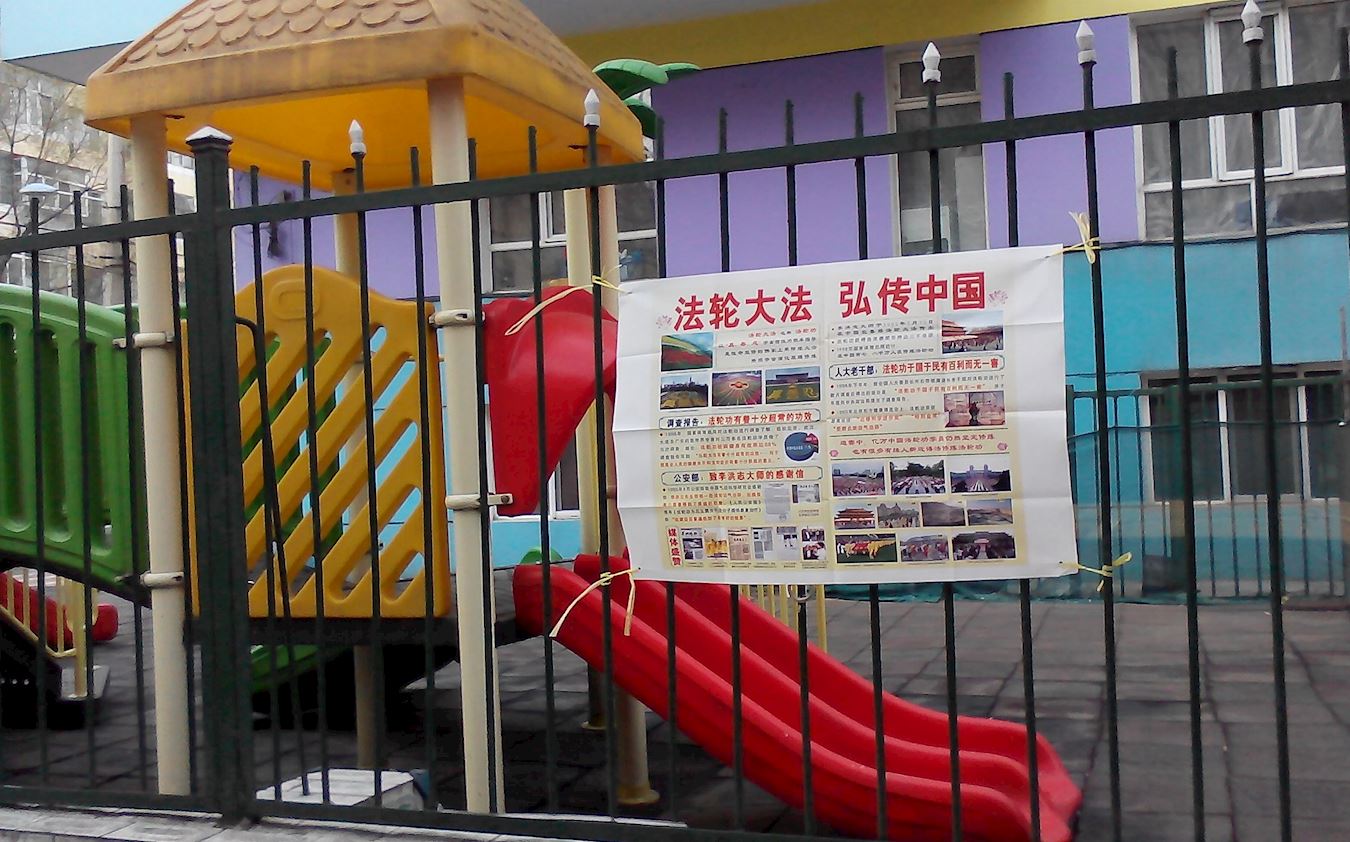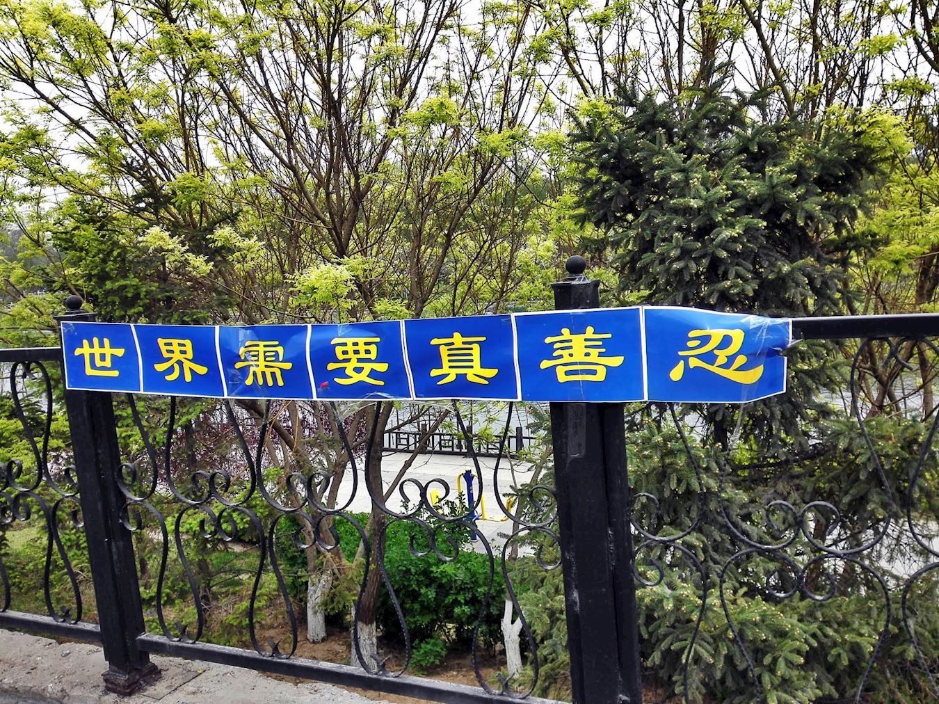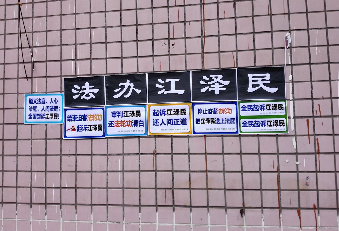 哈尔滨市近期拍照的讲真相展板树挂图片