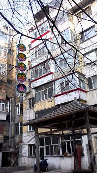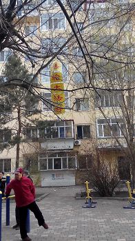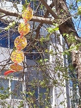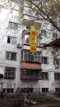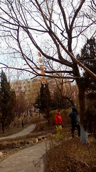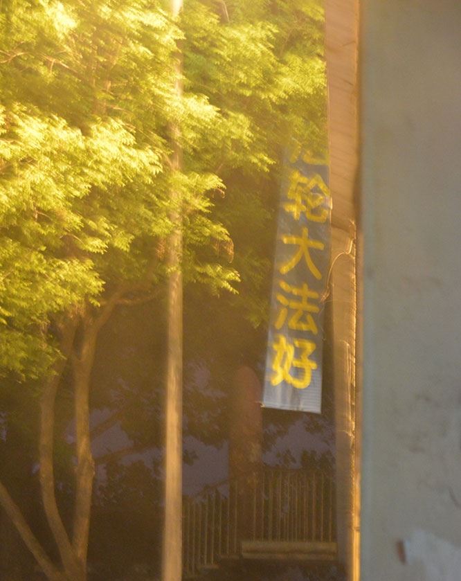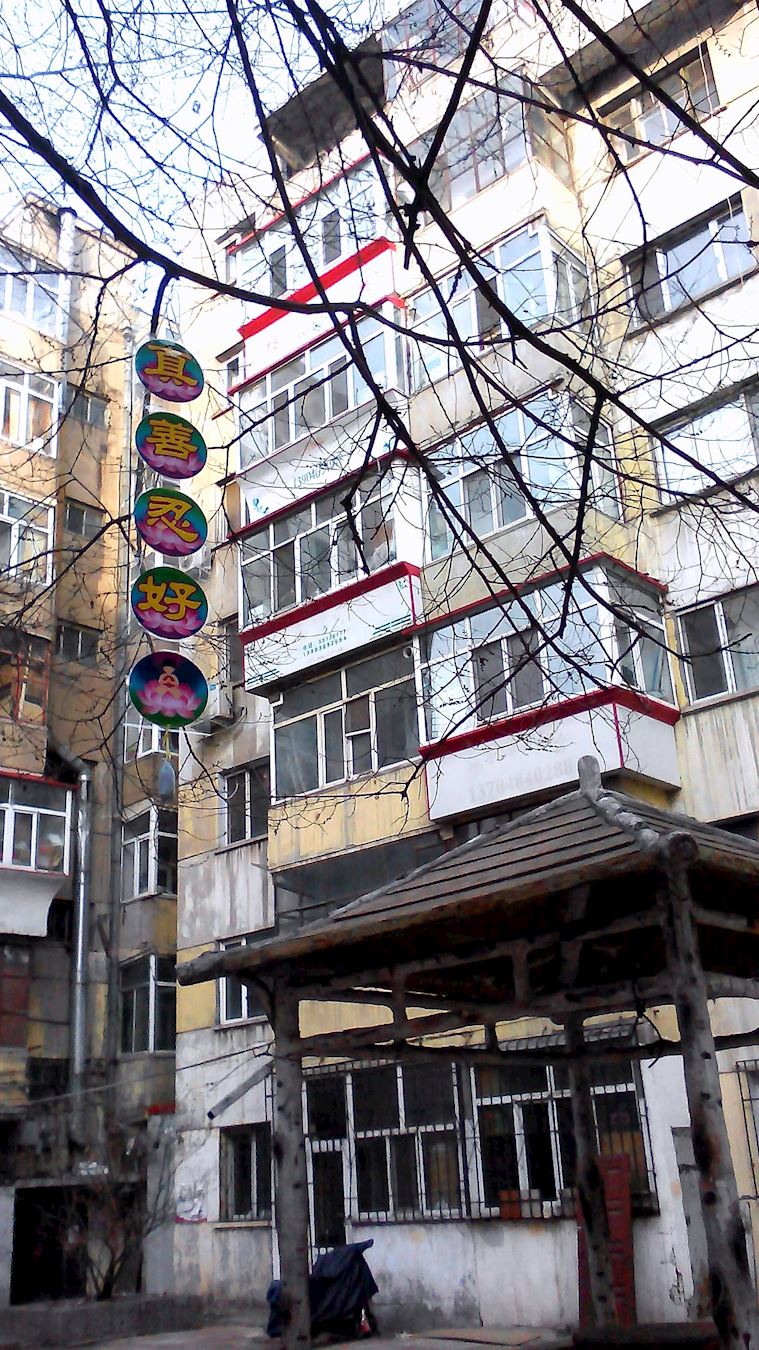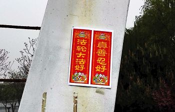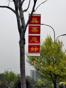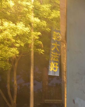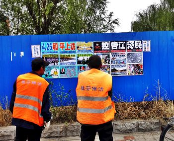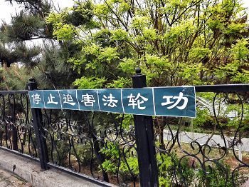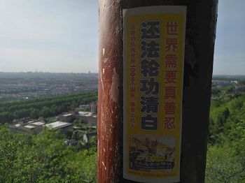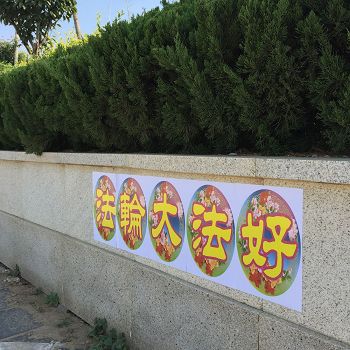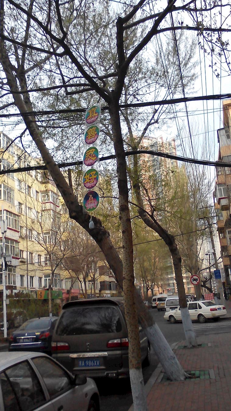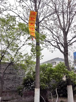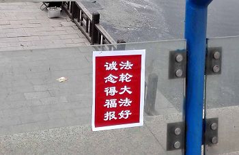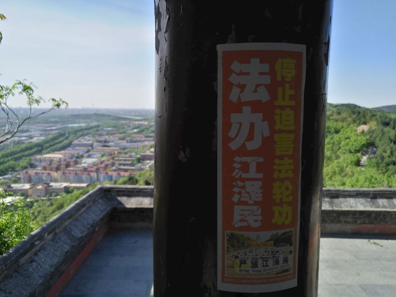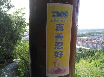 哈尔滨市近期拍照的讲真相展板树挂图片