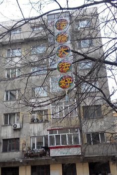 北京颐和园门前同庆步行街边休息长廊里的粘贴