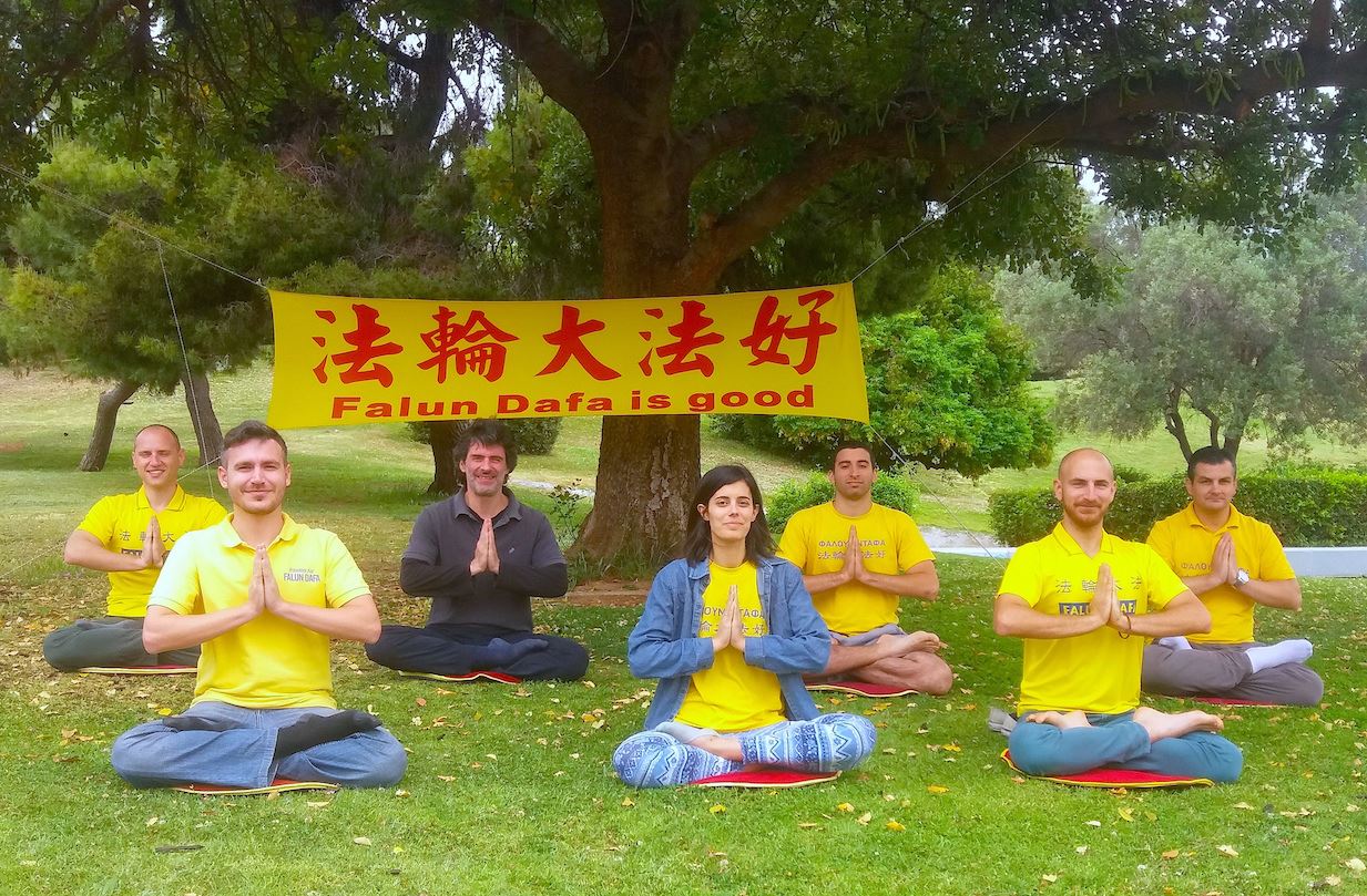 下午学员们来到雅典著名景点卫城(Acropolis)演示功法,庆祝法轮大法洪传二十五周年。讲真相征签,呼吁各国人民共同制止中共暴政,停止迫害法轮功。
