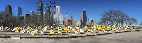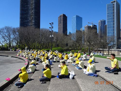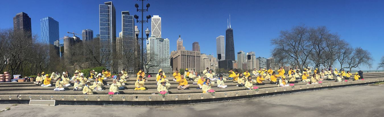 十八年过去了,和世界各地的法轮功学员一样,无论是在中领馆前,市中心广场上,中国城的真相点,都能看到芝加哥的学员们祥和、理智的炼功和讲真相场景。
