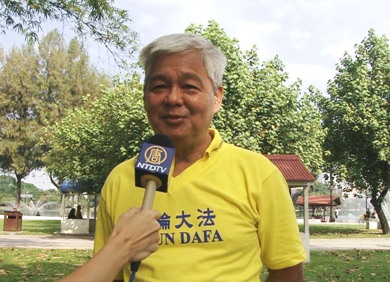 来自霹雳州怡宝的周先生,今年59岁,几年前在美国的时候,常常接触到法轮功,因此而对法轮功起了好奇心,但是没有认真学炼。后来在2013年的某一天,机缘巧合下在马来西亚家乡又遇到了法轮功学员到此地来弘法,从那时起周先生才开始认真了解和学炼法轮功。在一炼之下,觉得非常好,他说:“这个就是我要的,这个对人体非常好,神奇功法,就如师父在《转法轮》中说的一切,该有的都会有。”