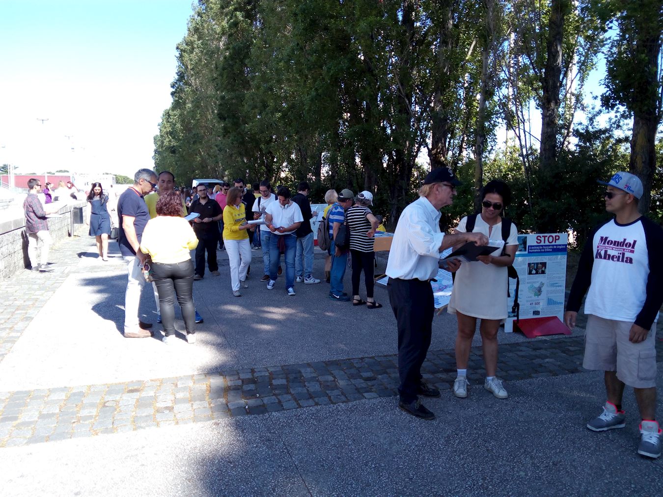 图4:里斯本世博会公园里,游人签名支持法轮功反迫害