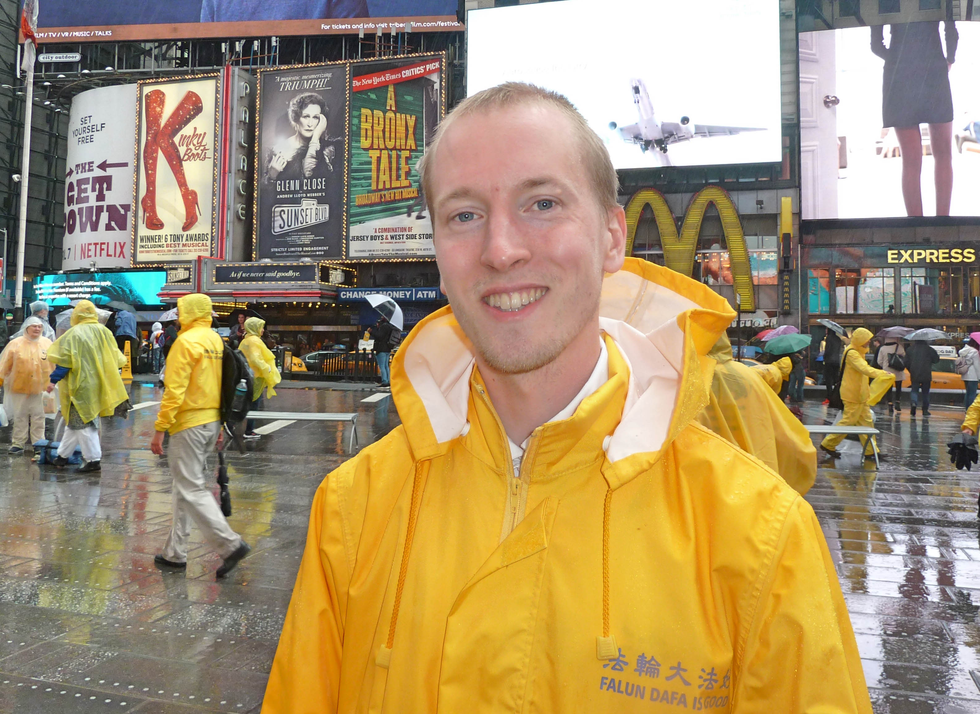 二十七岁的大学生Ilmari从芬兰赫尔辛基来到纽约来参加万人大法会及相关活动。近三年前,在朋友推荐下他在互联网上下载了《转法轮》,开始断断续续地看。他说:“一开始我觉得,修炼对我来说太难了,但我还是坚持读了下去。后来我意识到,让我的生活有所改变是很重要的。大约一年后,我决定要去尝试一下,经常读法炼功,真正地改变我的想法。”