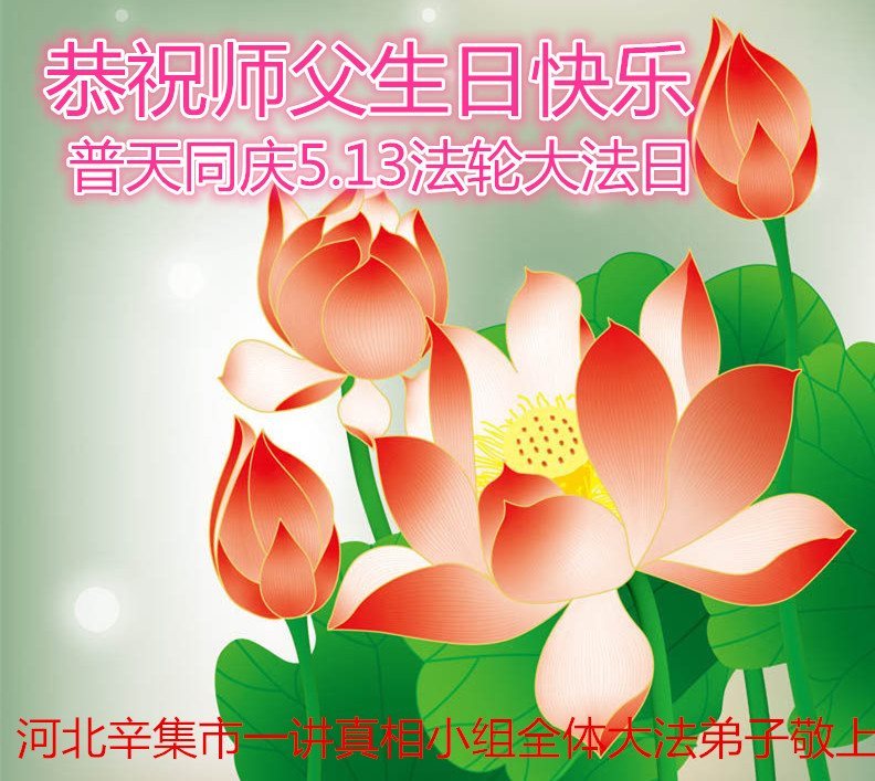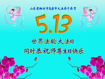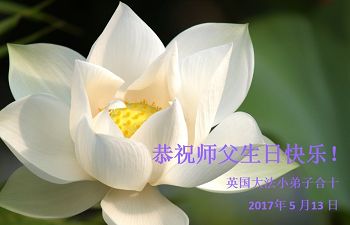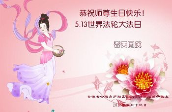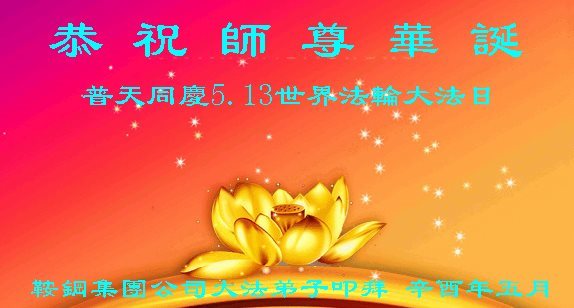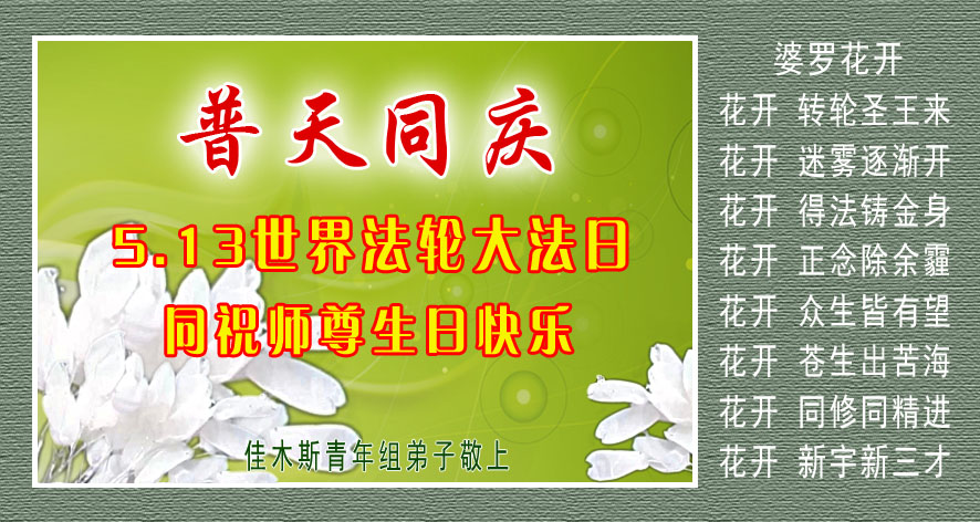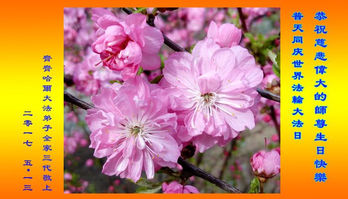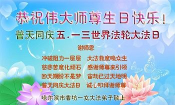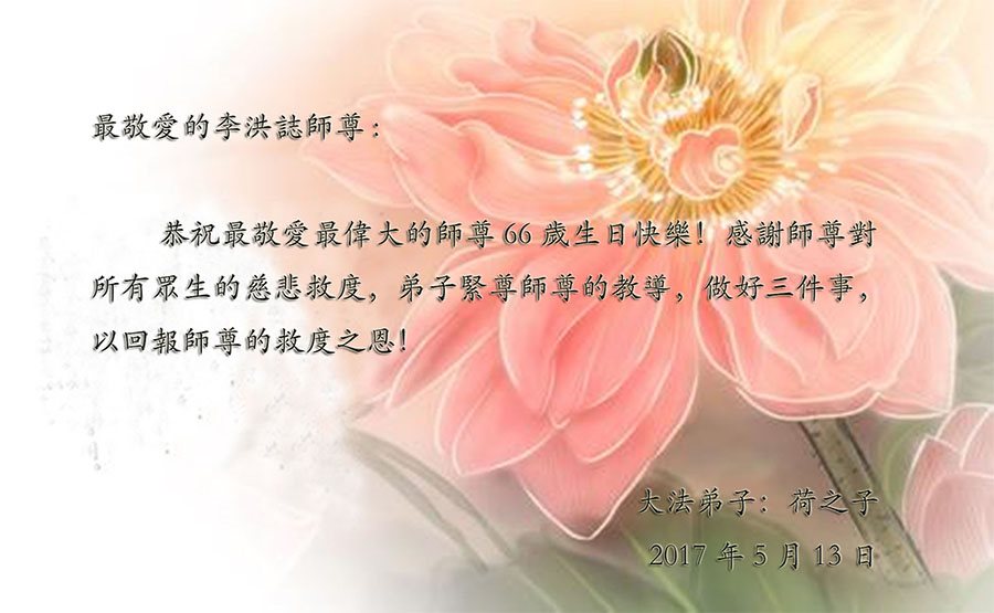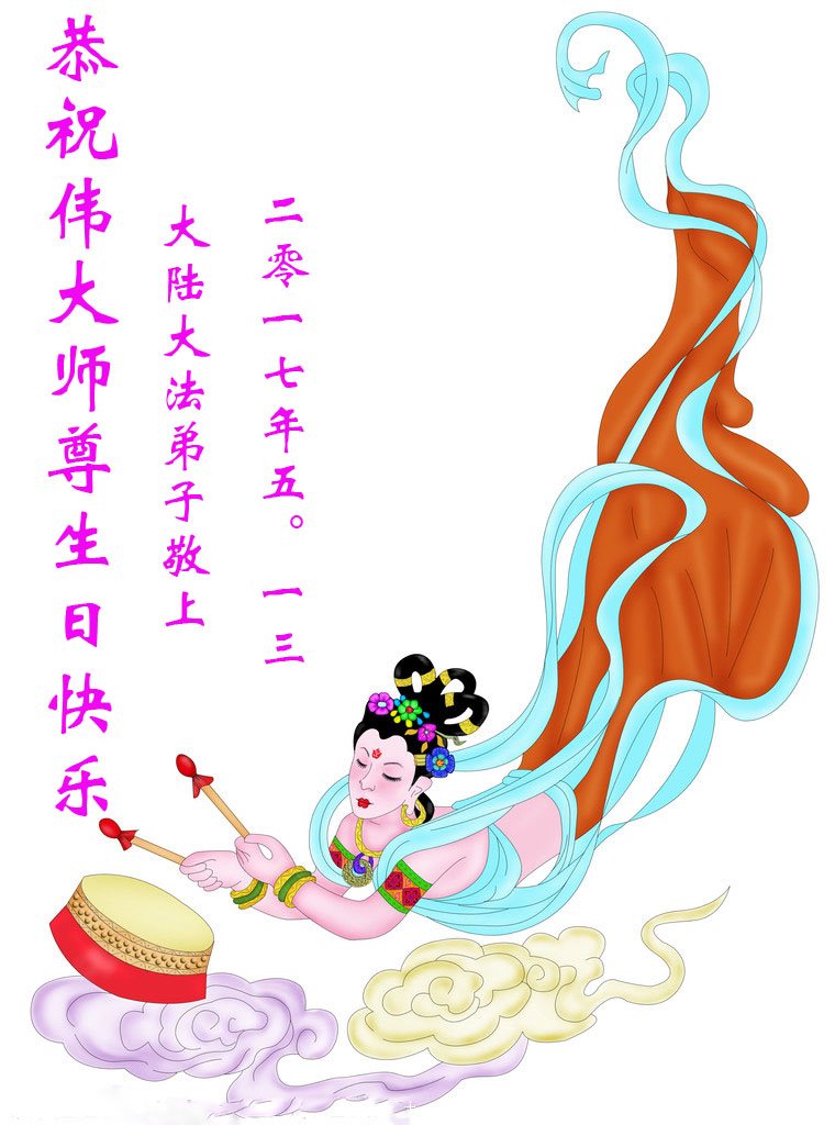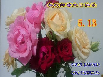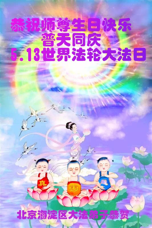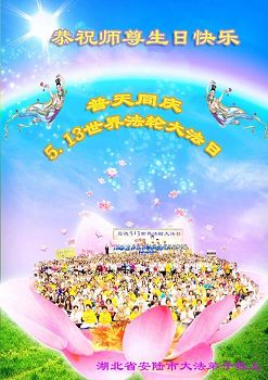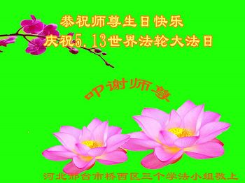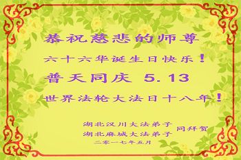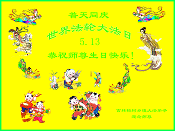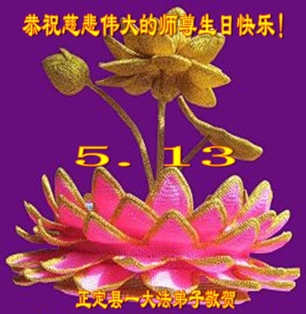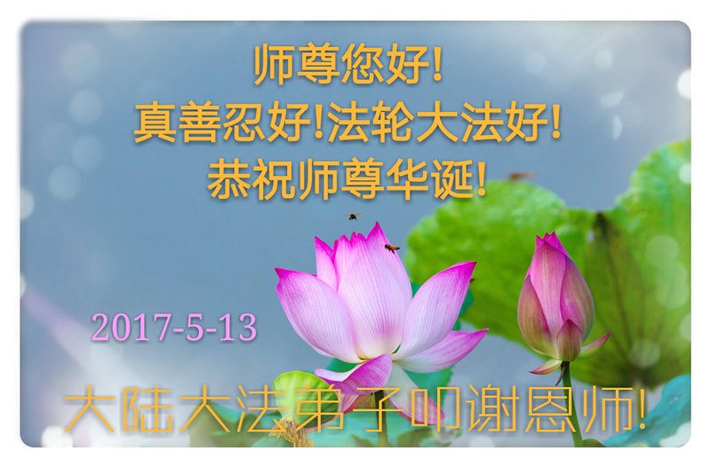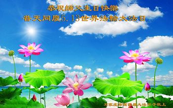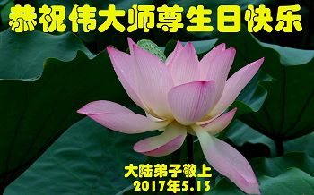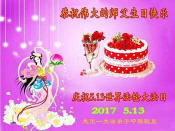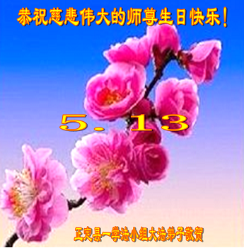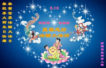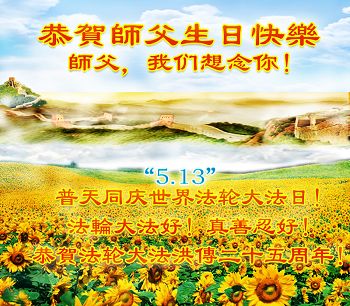 在五月十三日世界法轮大法日来临之际,衷心祝愿李老师生日快乐!法轮大法好!真善忍好!感谢大法洪传!感谢师尊救度之恩!